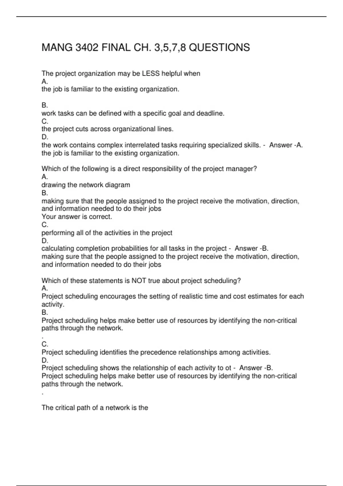 MANG 3402 FINAL CH. 3,5,7,8 QUESTIONS
