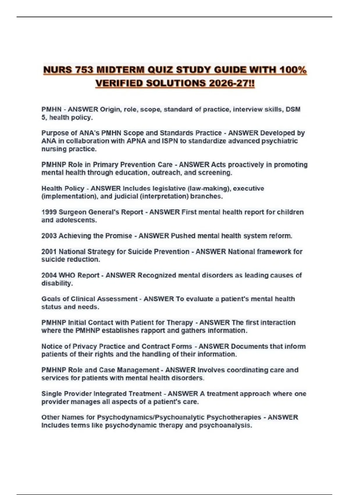 NURS 753 MIDTERM QUIZ STUDY GUIDE WITH 100% VERIFIED SOLUTIONS 2026-27!!...