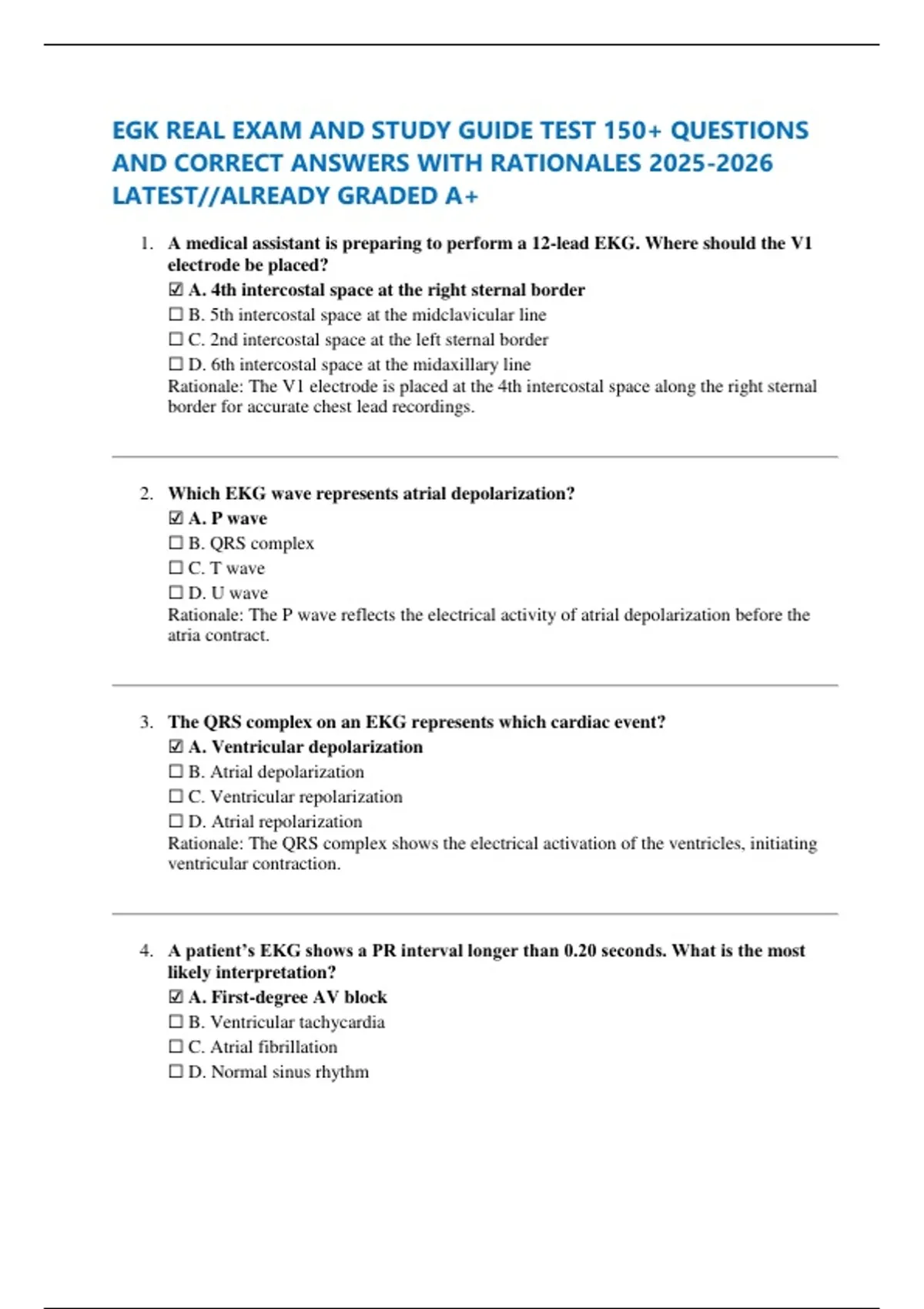 EGK REAL EXAM AND STUDY GUIDE TEST 150+ QUESTIONS AND CORRECT ANSWERS WITH RATIONALES LATEST//ALREADY GRADED A+ EGK REAL EXAM AND STUDY GUIDE TEST 150+ QUESTIONS AND CORRECT ANSWERS WITH RATIONALES LATEST//ALREADY GRADED A+