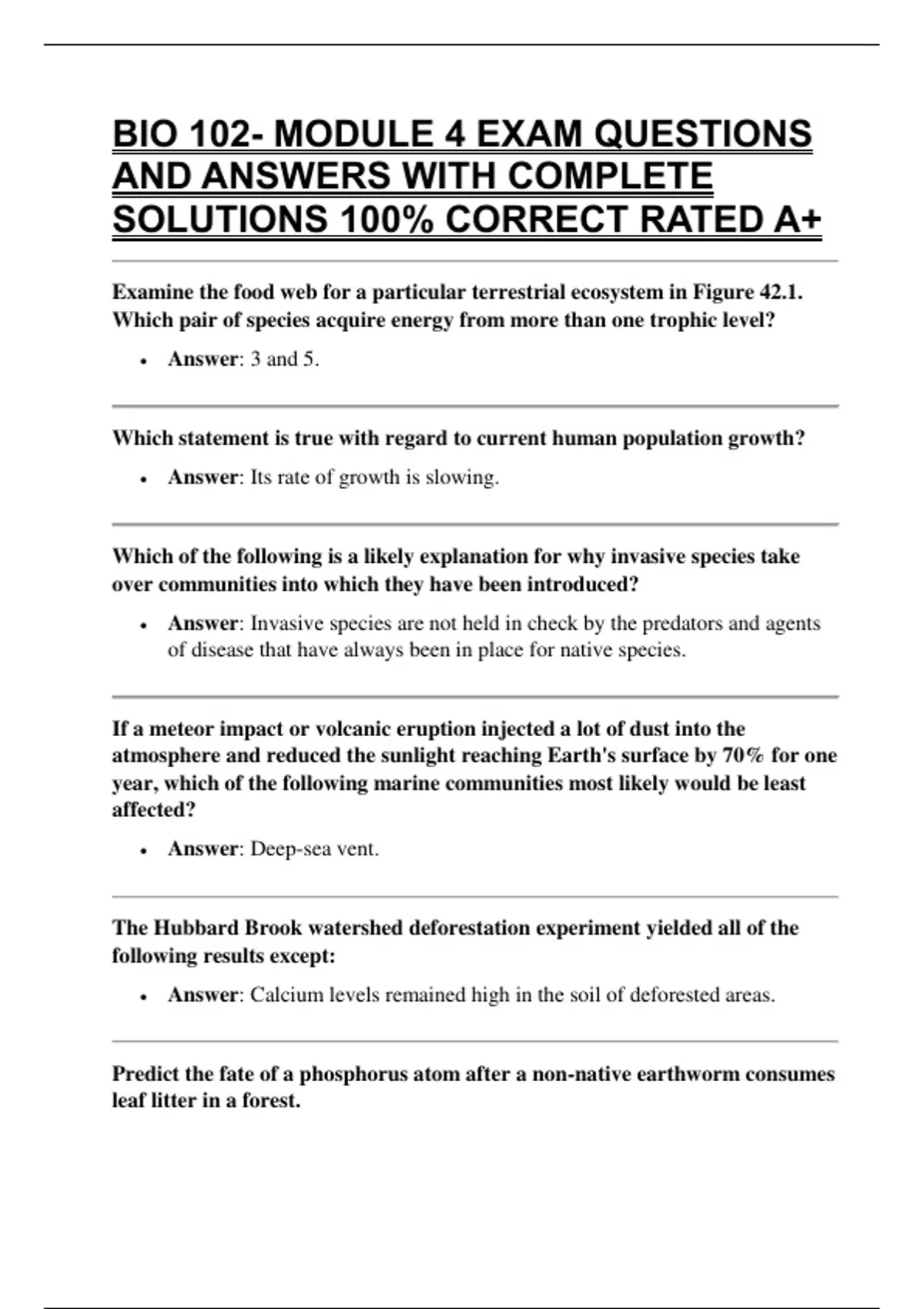 BIO 102- MODULE 4 EXAM QUESTIONS AND ANSWERS WITH COMPLETE SOLUTIONS 100% CORRECT RATED A+
