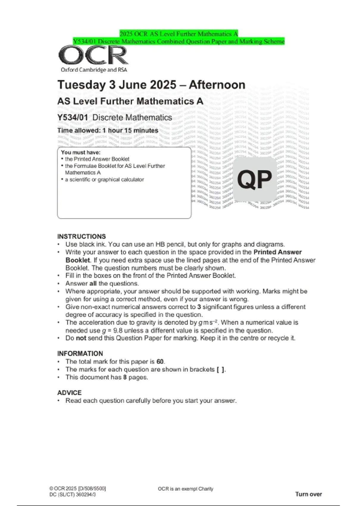 2025 ocr as level further mathematics a y53401