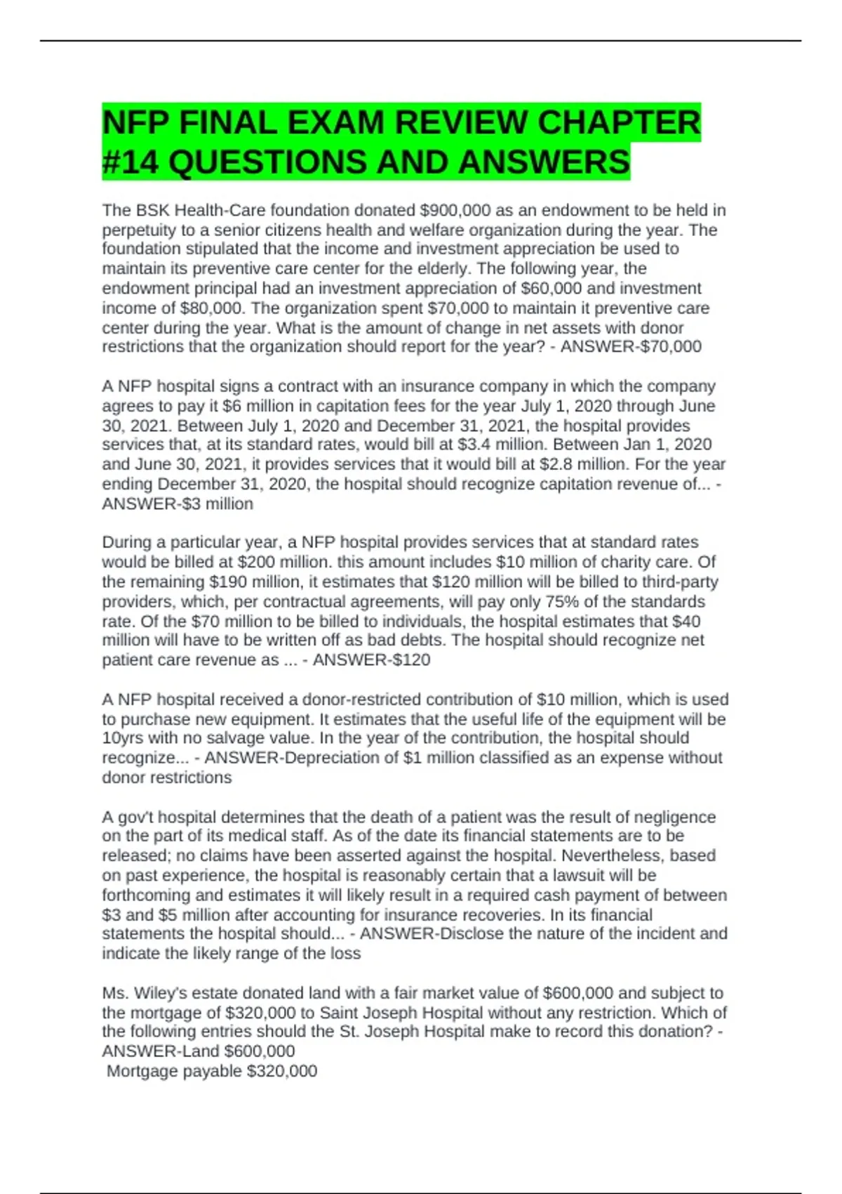 NFP FINAL EXAM REVIEW CHAPTER #14 QUESTIONS AND ANSWERS
