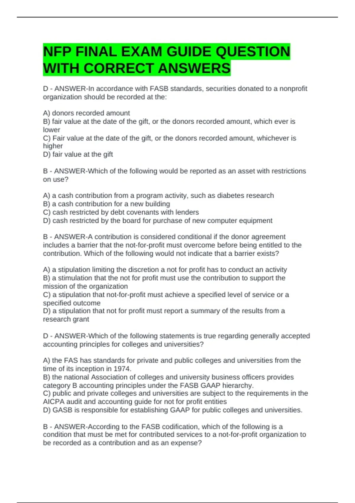 NFP FINAL EXAM GUIDE QUESTION WITH CORRECT ANSWERS