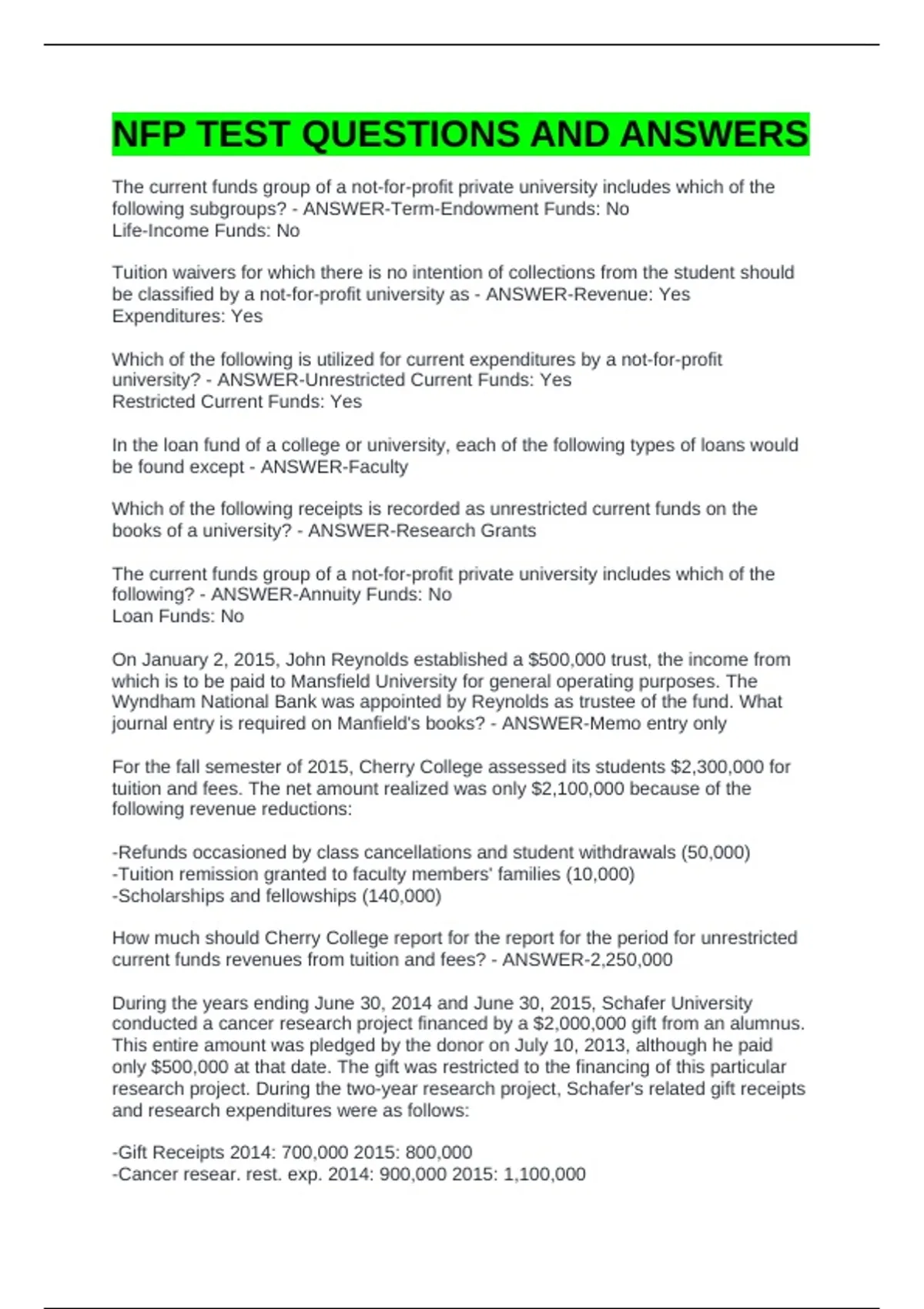 be classified by a not-for-profit university as - ANSWER-Revenue: Yes