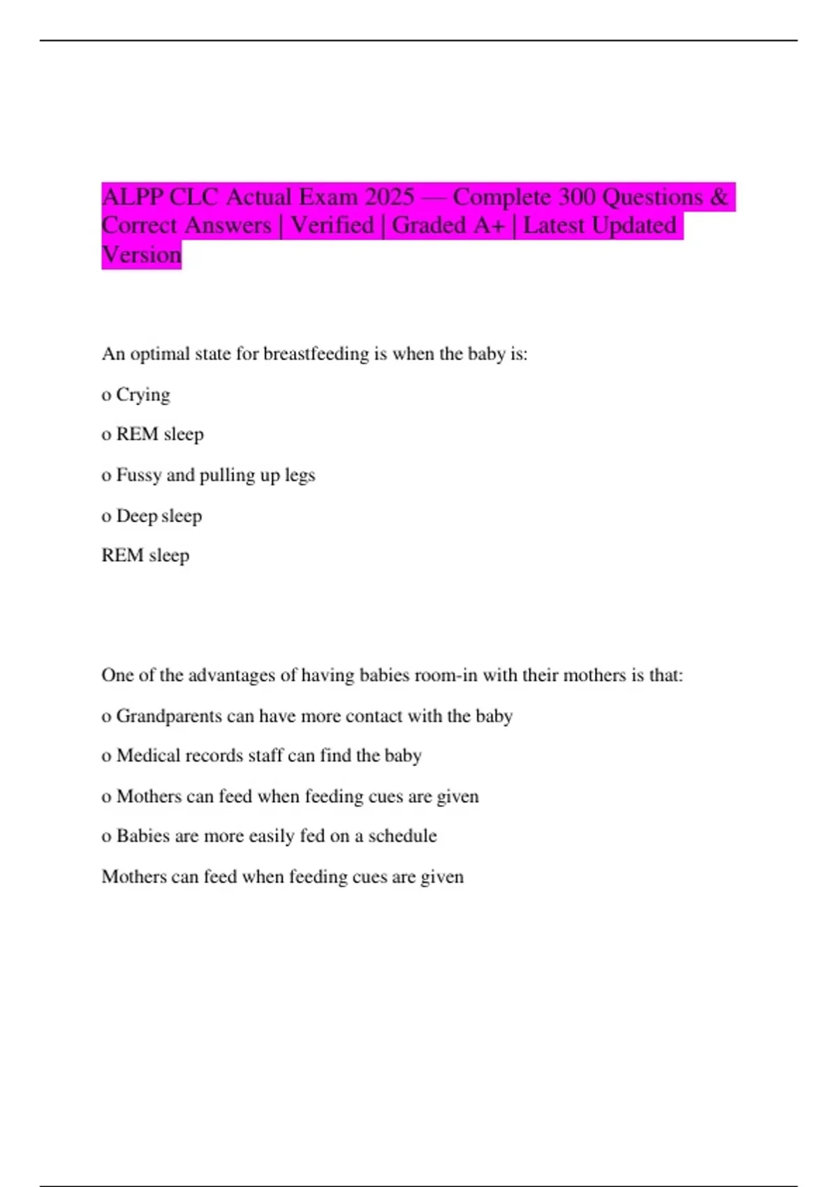 ALPP CLC Actual Exam 2025 — 300 Verified Questions & Correct Answers | Graded A+