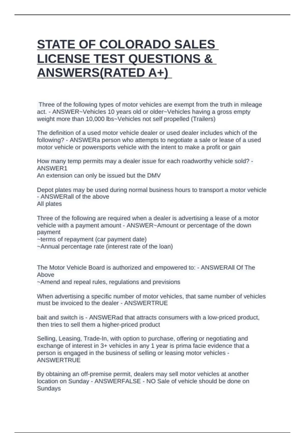 LICENSE TEST QUESTIONS &