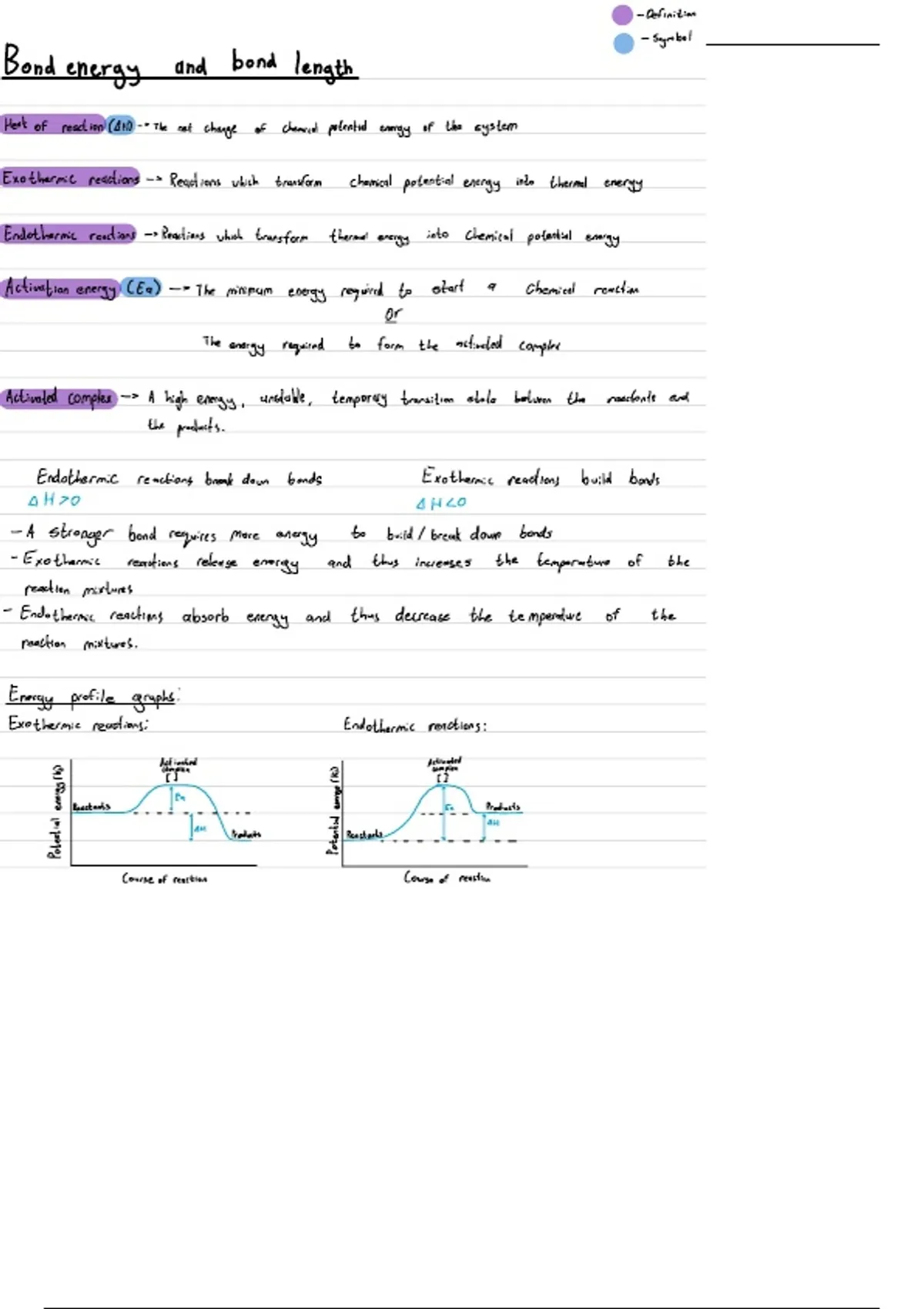 Exothermic reactions : Endothermic reactions :
