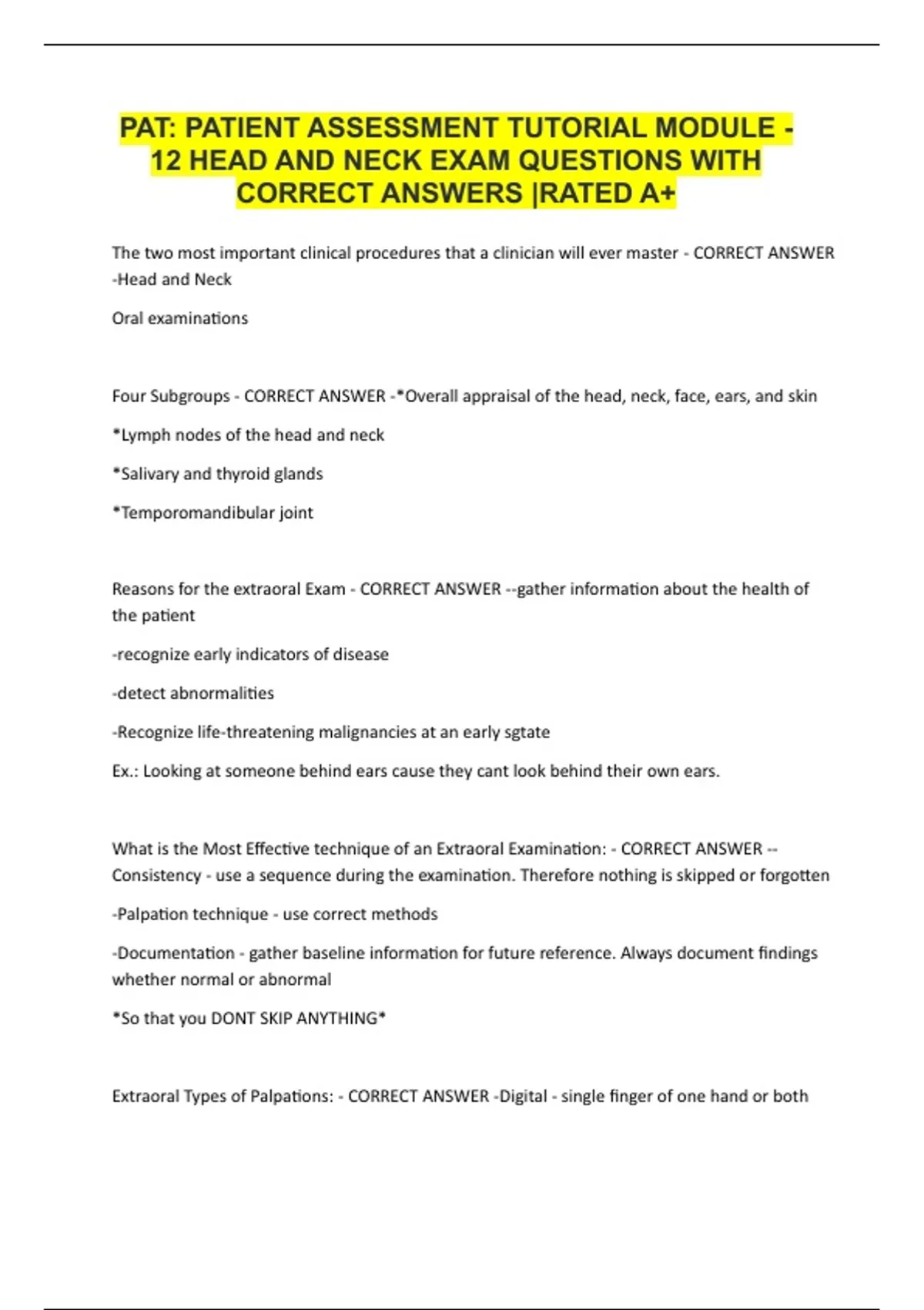 12 HEAD AND NECK EXAM QUESTIONS WITH