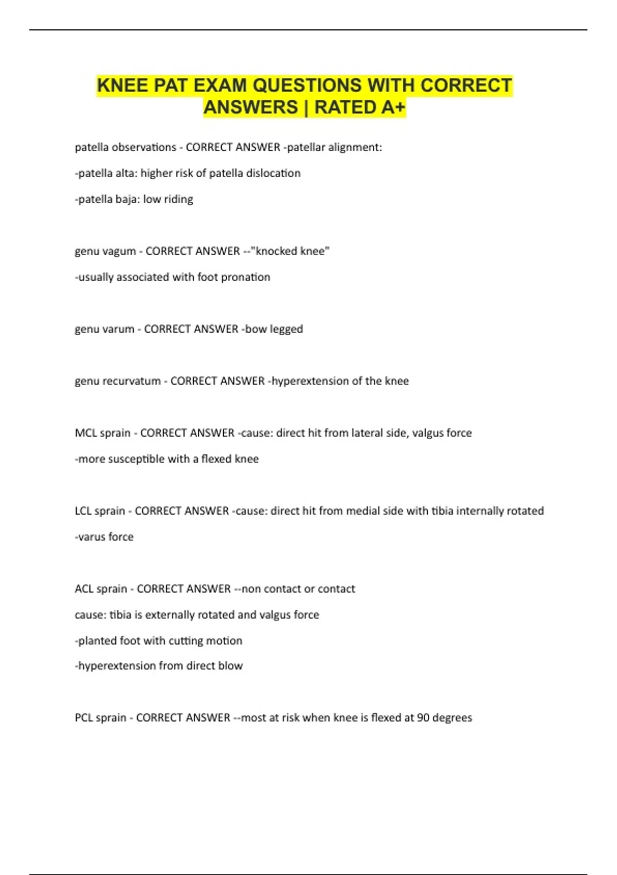 KNEE PAT EXAM QUESTIONS WITH CORRECT