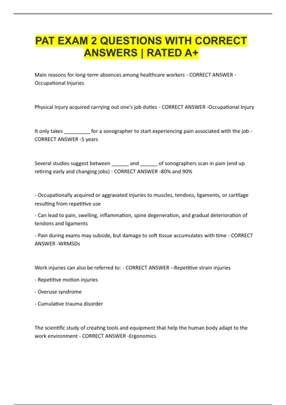 PAT EXAM 2 QUESTIONS WITH CORRECT ANSWERS | RATED A+