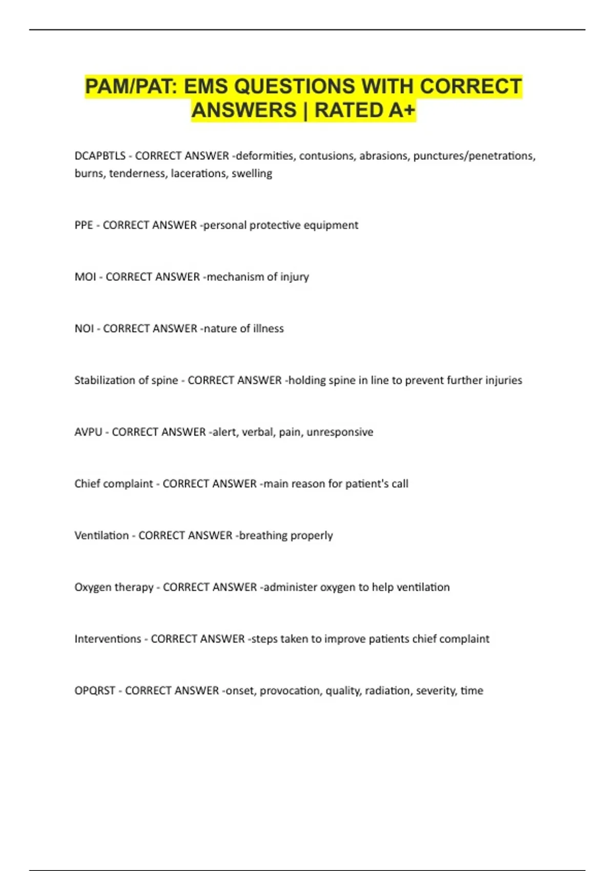 PAMPAT EMS QUESTIONS WITH CORRECT ANSWERS | RATED A+
