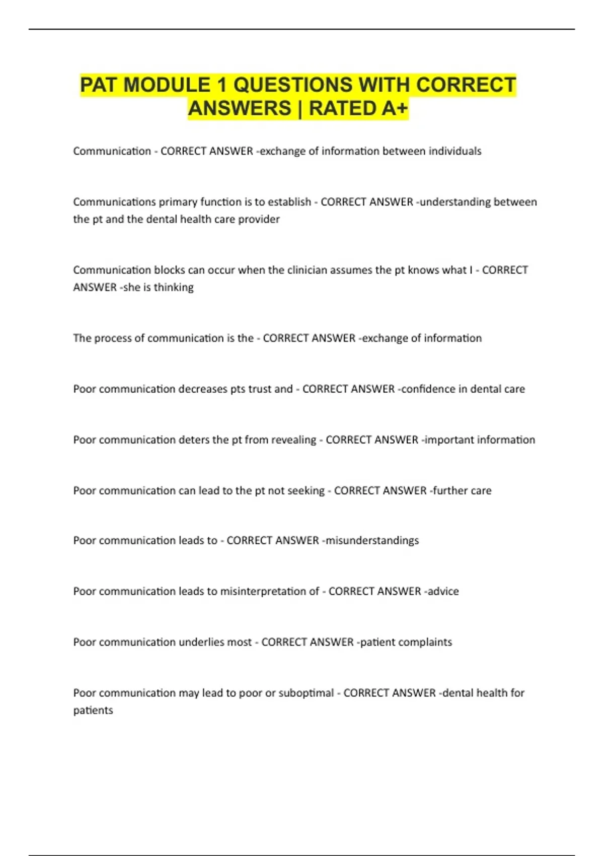PAT MODULE 1 QUESTIONS WITH CORRECT