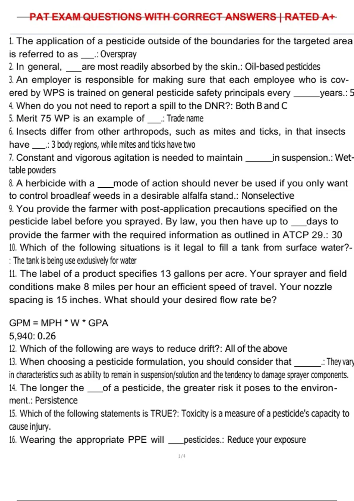 PAT EXAM QUESTIONS WITH CORRECT ANSWERS | RATED A+