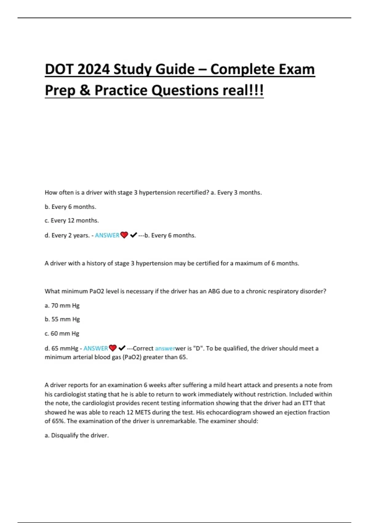 d. 65 mmHg - ANSWER ✔---Correct answerwer is "D". To be qualified, the driver should meet a