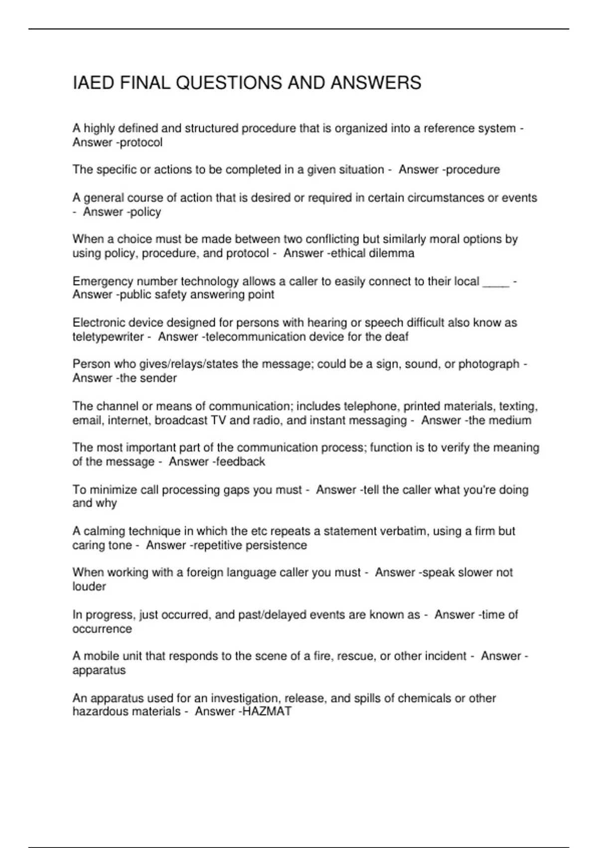 IAED FINAL QUESTIONS AND ANSWERS