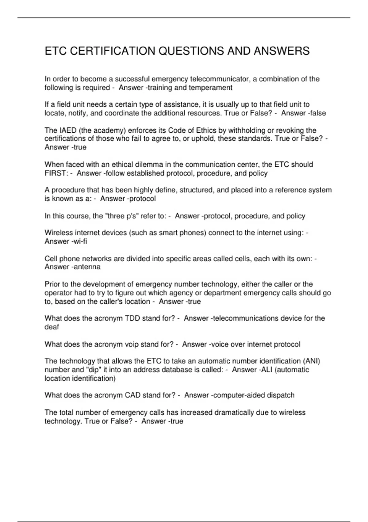 ETC CERTIFICATION QUESTIONS AND ANSWERS