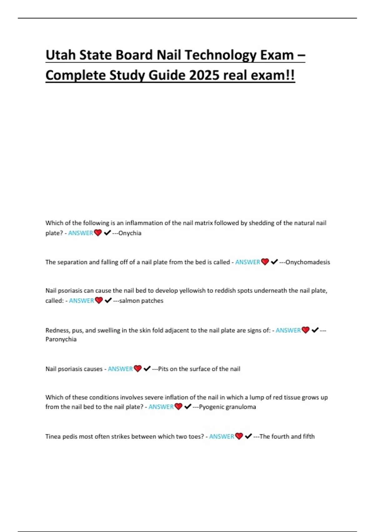 onychomycosis will NOT cause - ANSWER ✔---Redness in the skin fold adjacent to the nail plate