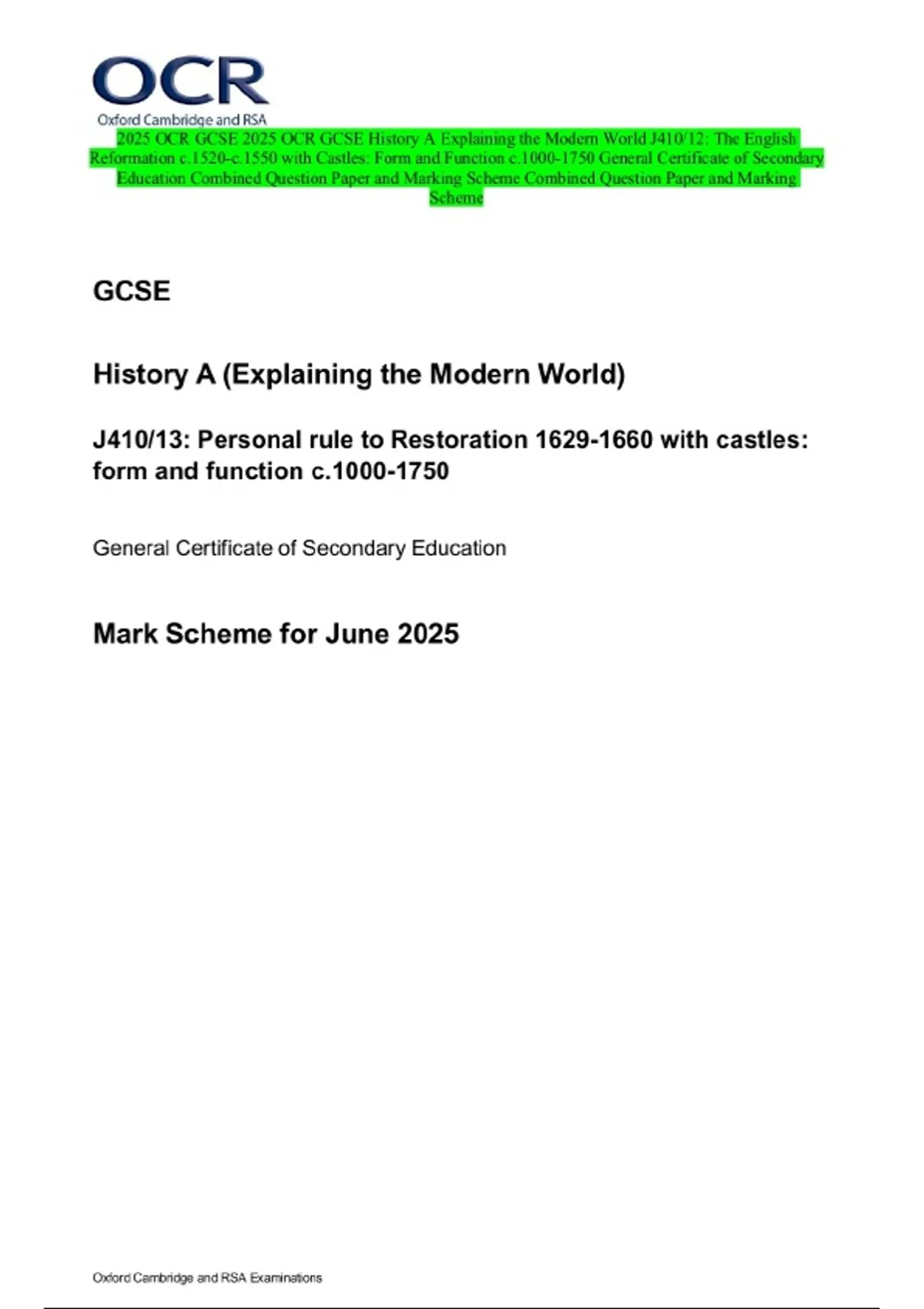 2025 OCR GCSE 2025 OCR GCSE History A Explaining the Modern World J410/12: The English Reformation c.1520-c.1550 with Castles: Form and Function c. General Certificate of Secondary Education Combined Question Paper and Marking Scheme Combined Question Paper and Marking Scheme