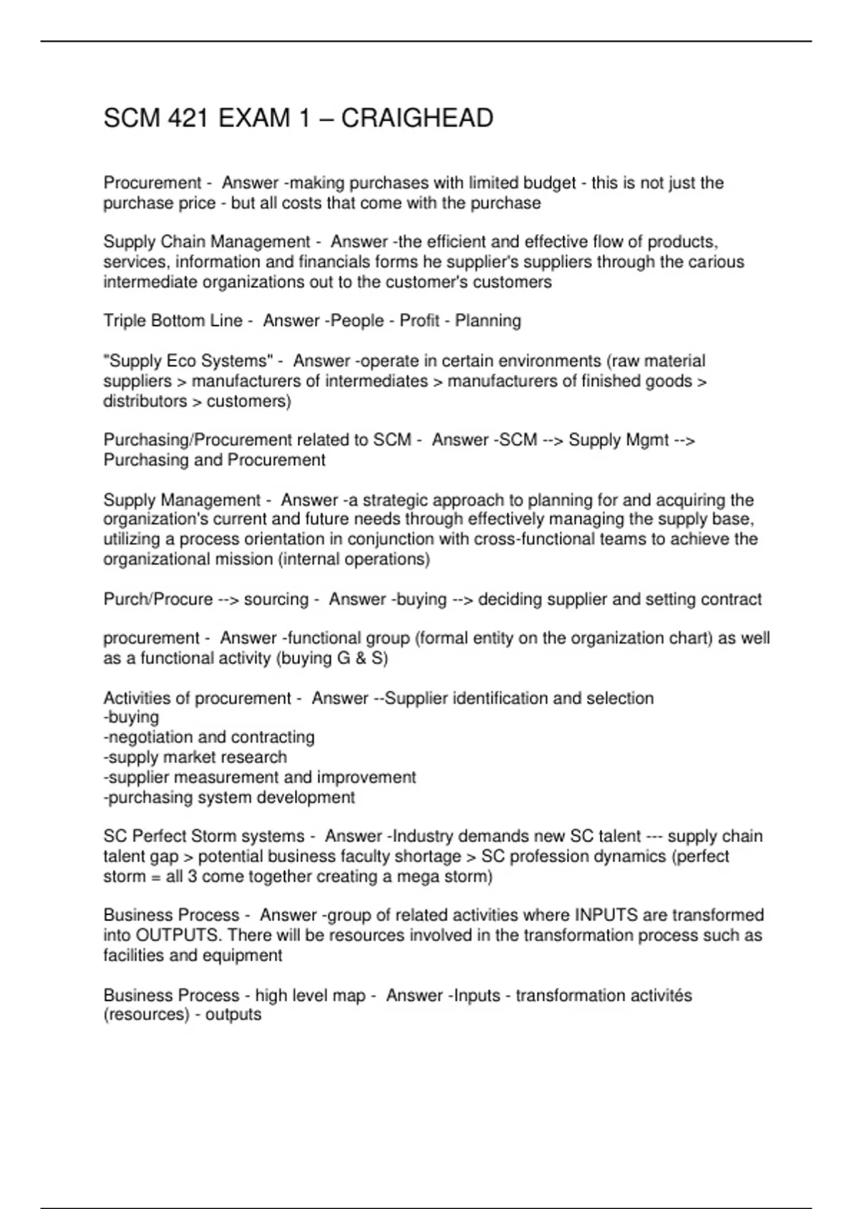 SCM 421 EXAM 1 – CRAIGHEAD