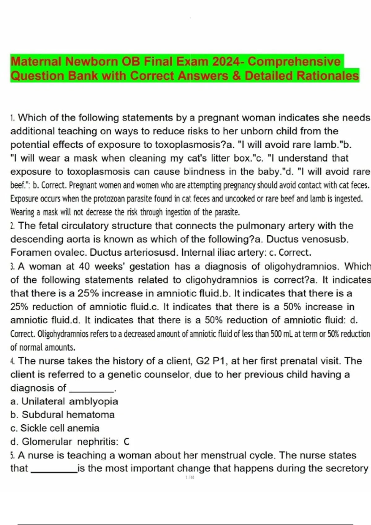 Maternal Newborn OB Final Exam 2024- Comprehensive Question Bank with Correct Answers & Detailed R Maternal Newborn OB Final Exam 2024- Comprehensive Question Bank with Correct Answers & Detailed R Maternal Newborn OB Final Exam 2024- Comprehensive Question Bank with Correct Answers & Detailed R