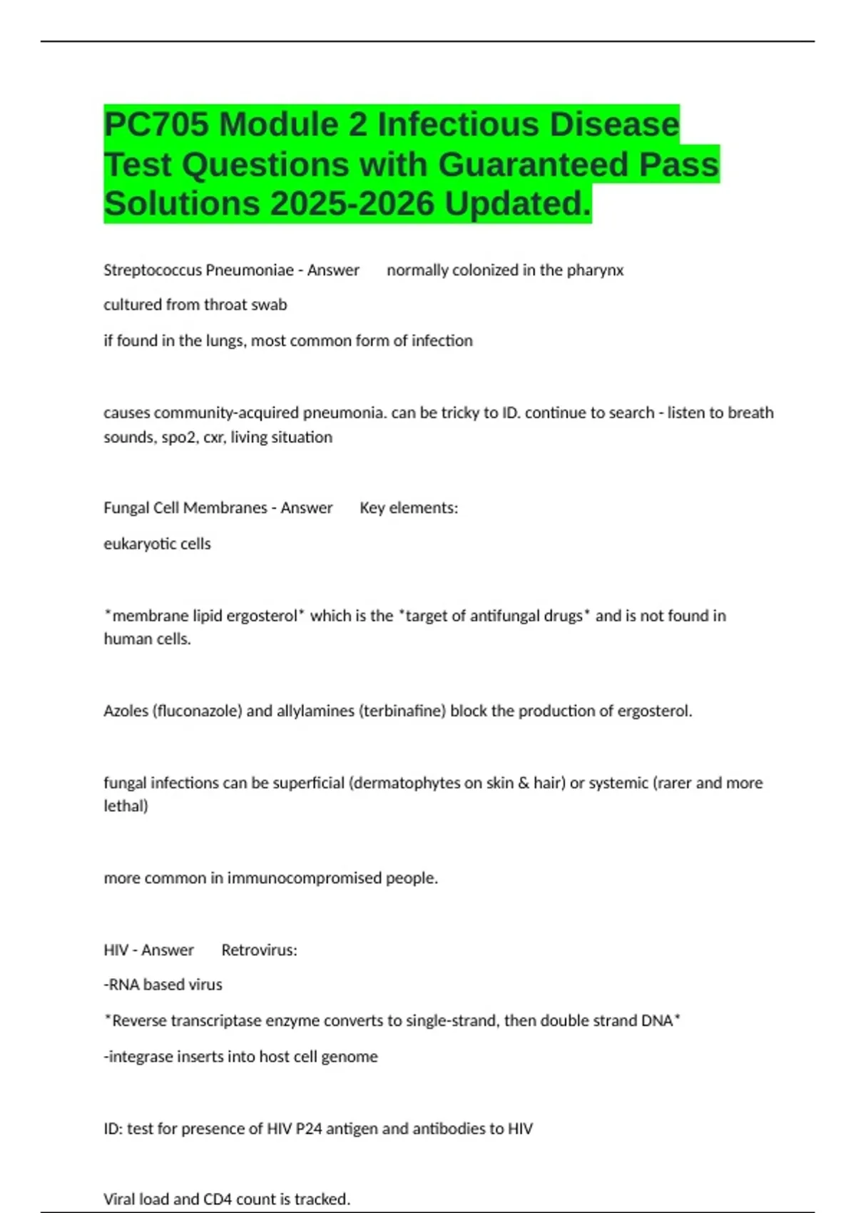 HIV - Answer Retrovirus: