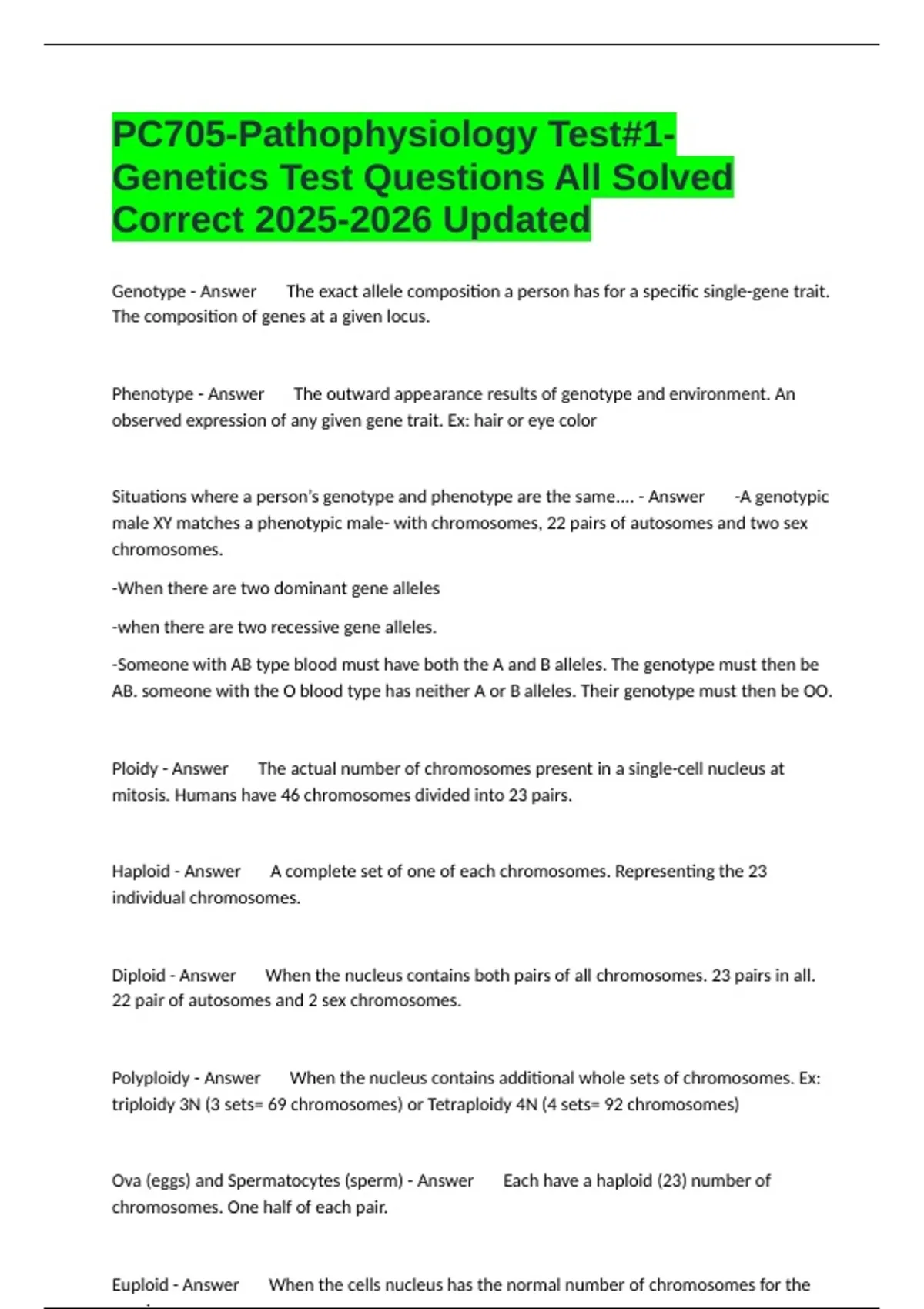 Genetics Test Questions All Solved