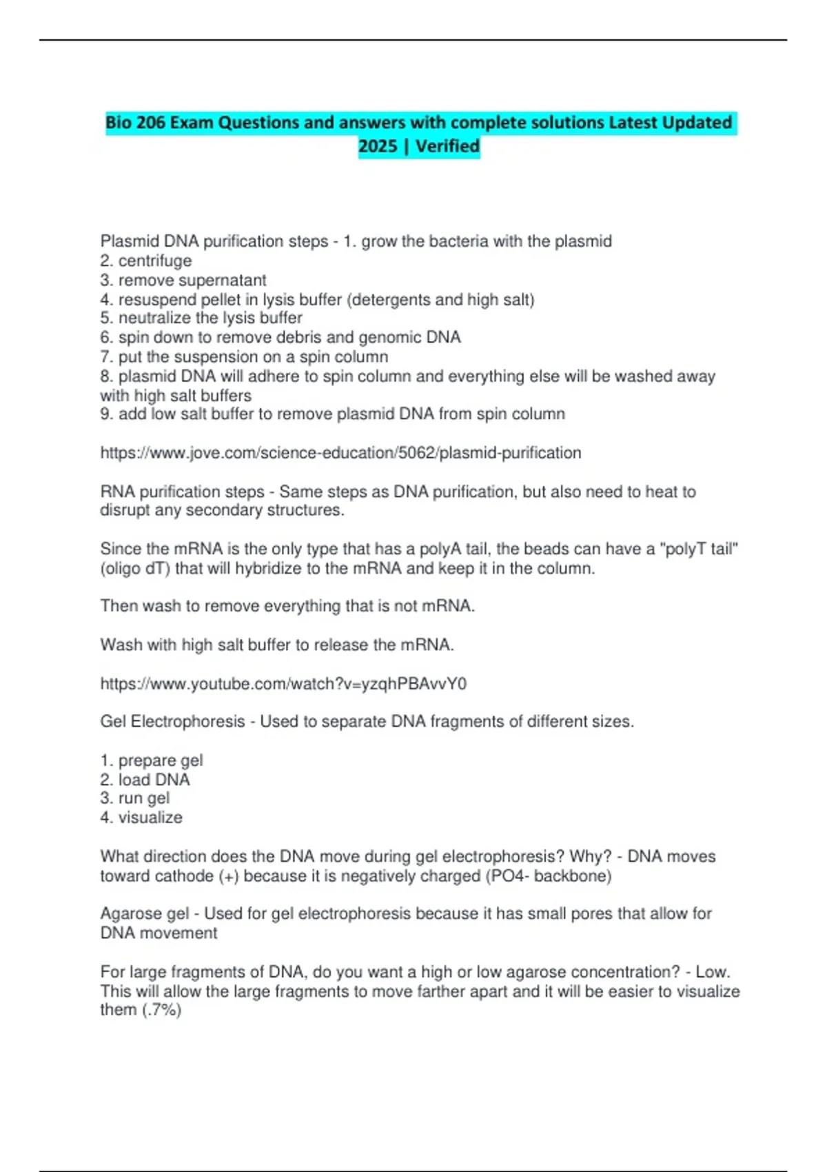 Bio 206 Exam Questions and answers with complete solutions Latest 2025 Update. Final Exam Revision Questions With 100% Correct Answers | 2025 Update|