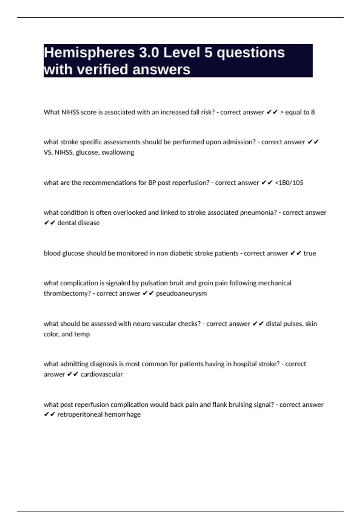 What NIHSS score is associated with an increased fall risk? - correct answer ✔✔ > equal to 8