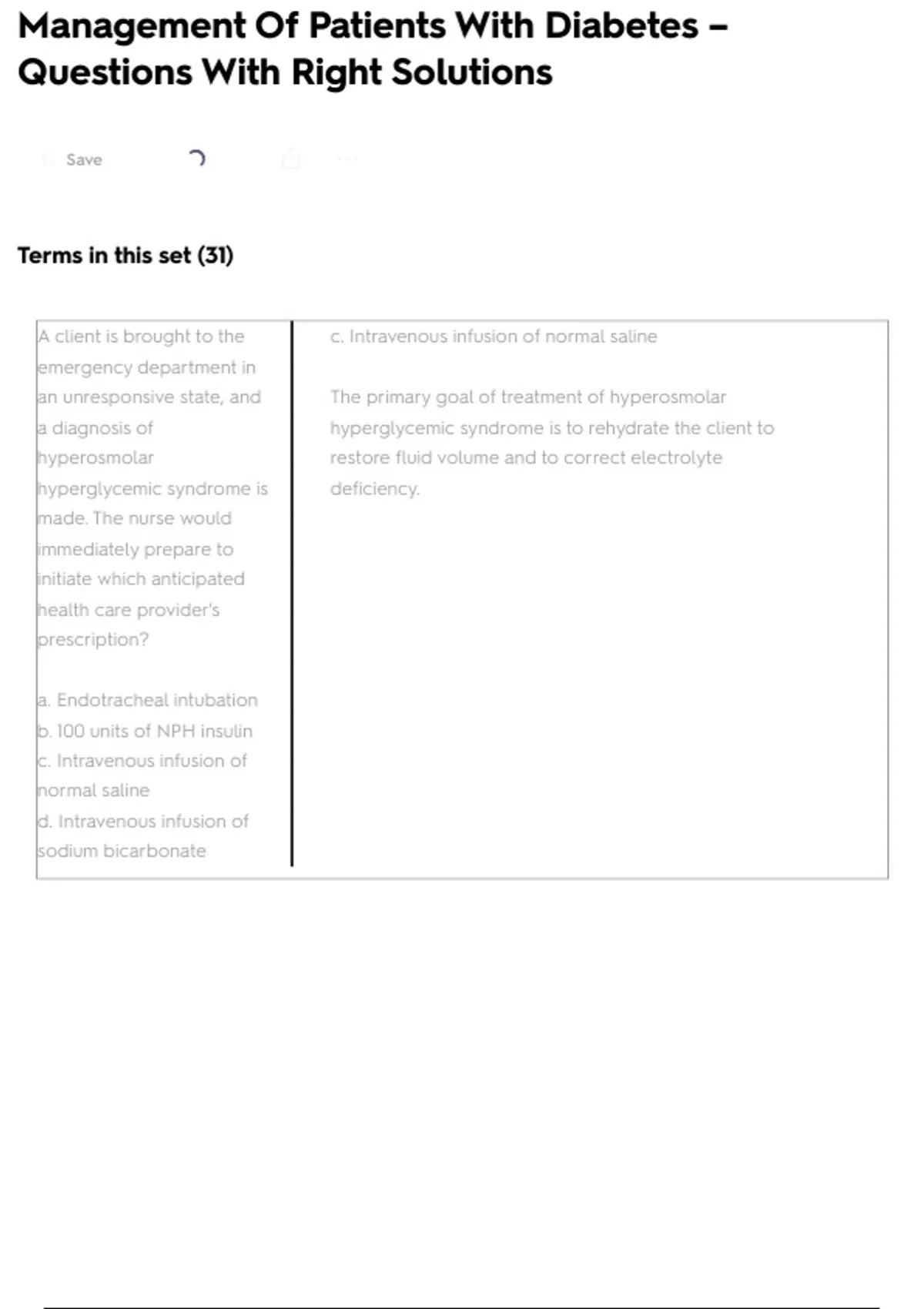 an unresponsive state, and The primary goal of treatment of hyperosmolar