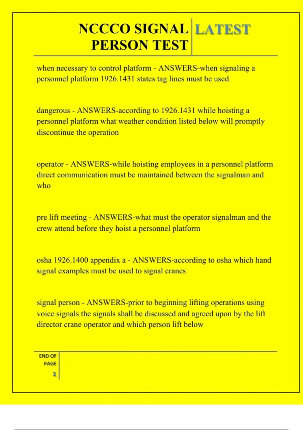 signal person - ANSWERS-prior to beginning lifting operations using