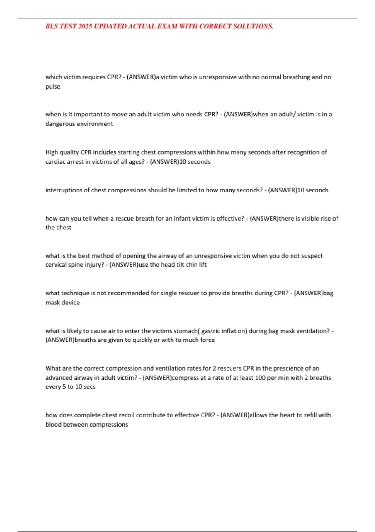 BLS TEST 2025 UPDATED ACTUAL EXAM WITH CORRECT SOLUTIONS.
