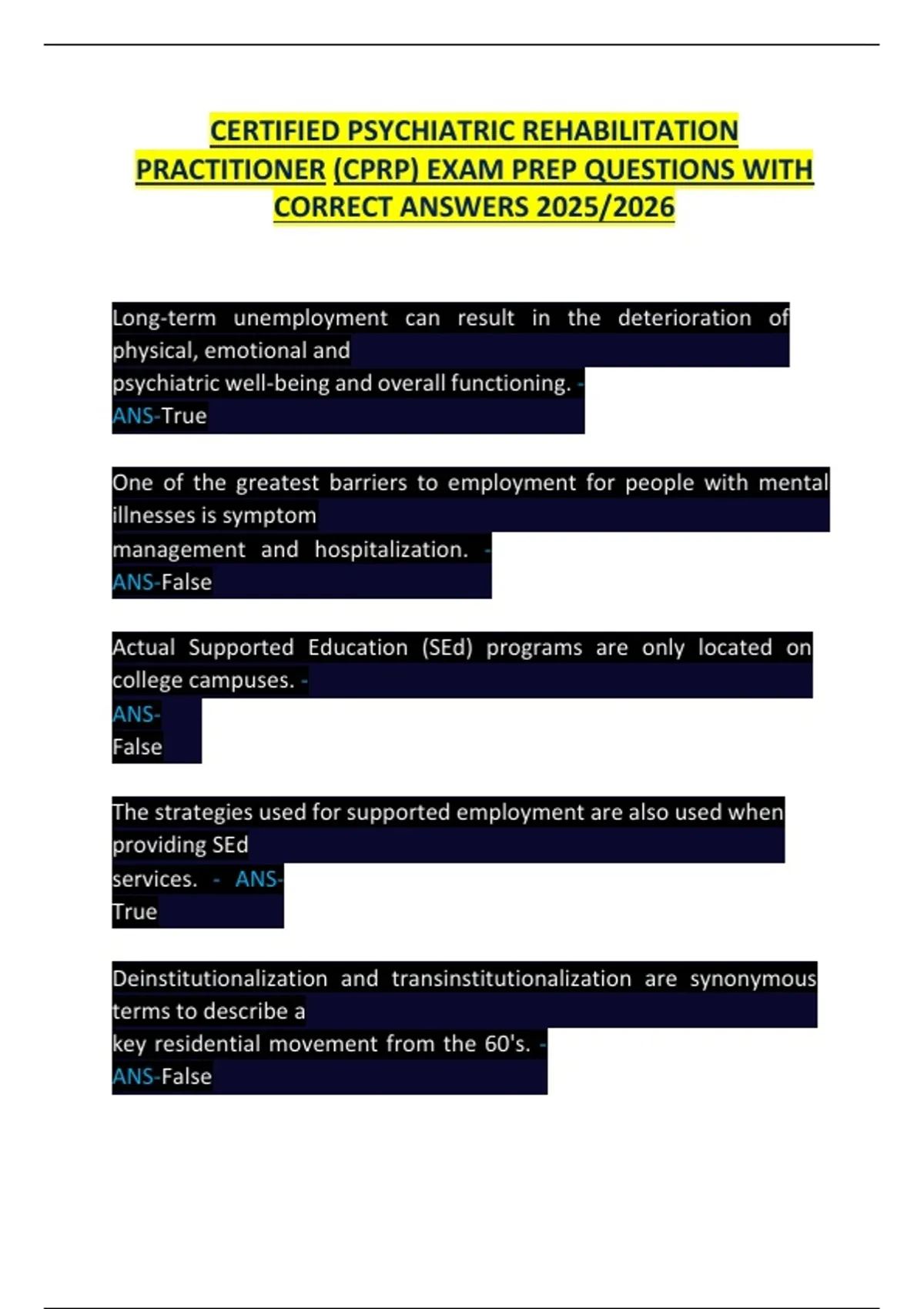 PRACTITIONER (CPRP) EXAM PREP QUESTIONS WITH