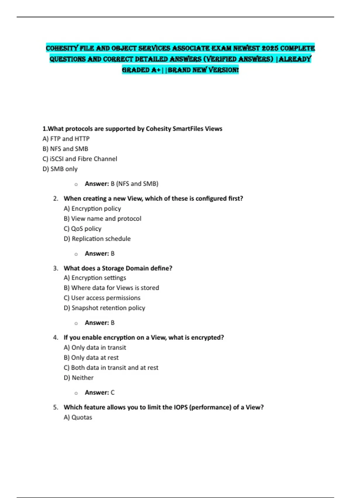 COHESITY FILE AND OBJECT SERVICES ASSOCIATE EXAM NEWEST 2025 COMPLETE