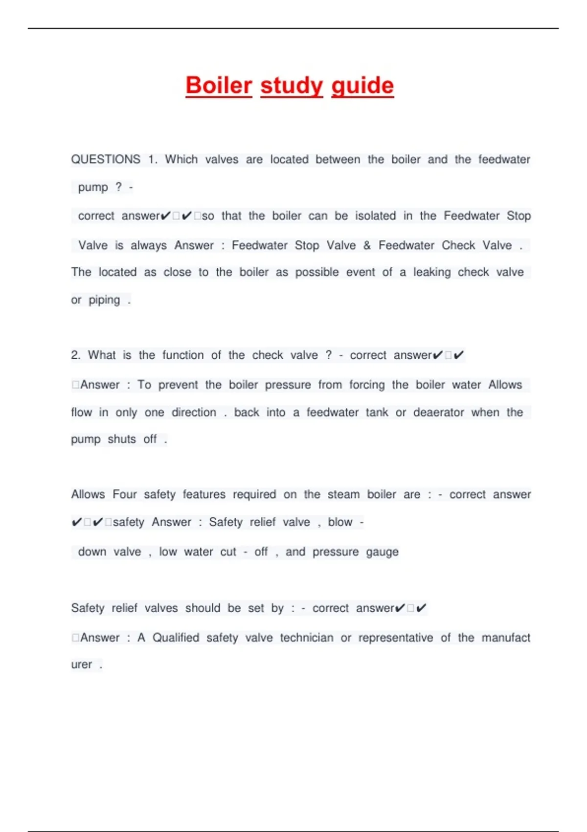 Boiler Exam Study Guide 1 with Complete Solutions