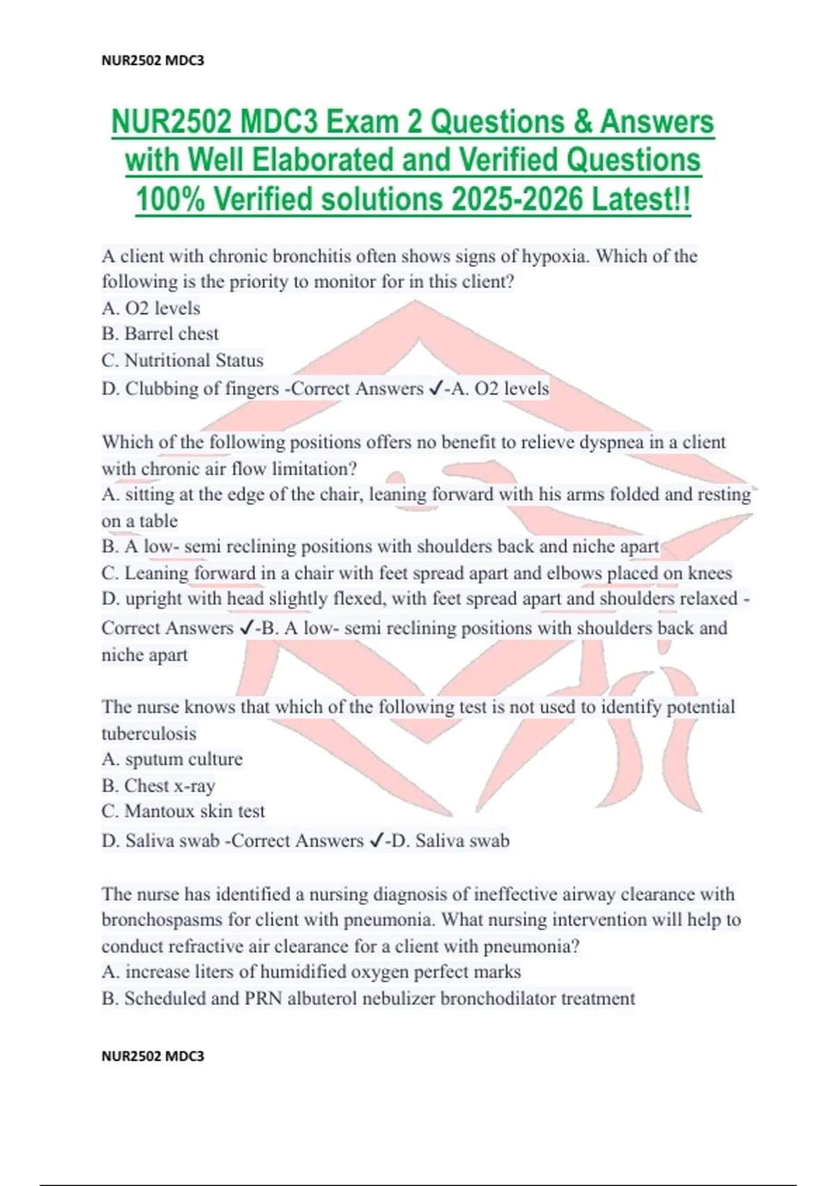 NUR2502 MDC3 Exam 2 Questions & Answers