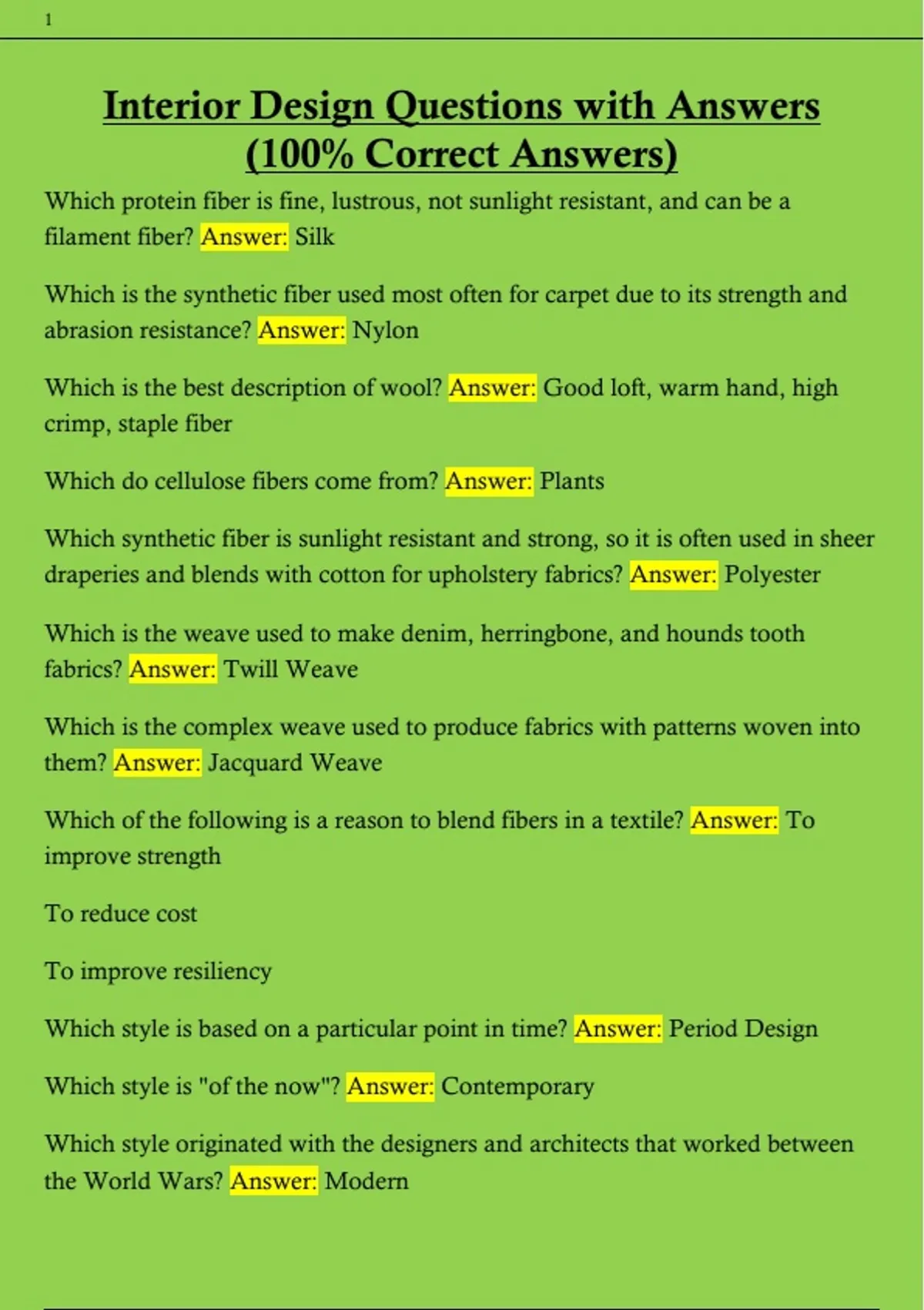 Interior Design Questions with Answers (100% Correct Answers)Interior Design Questions with Answers (100% Correct Answers)