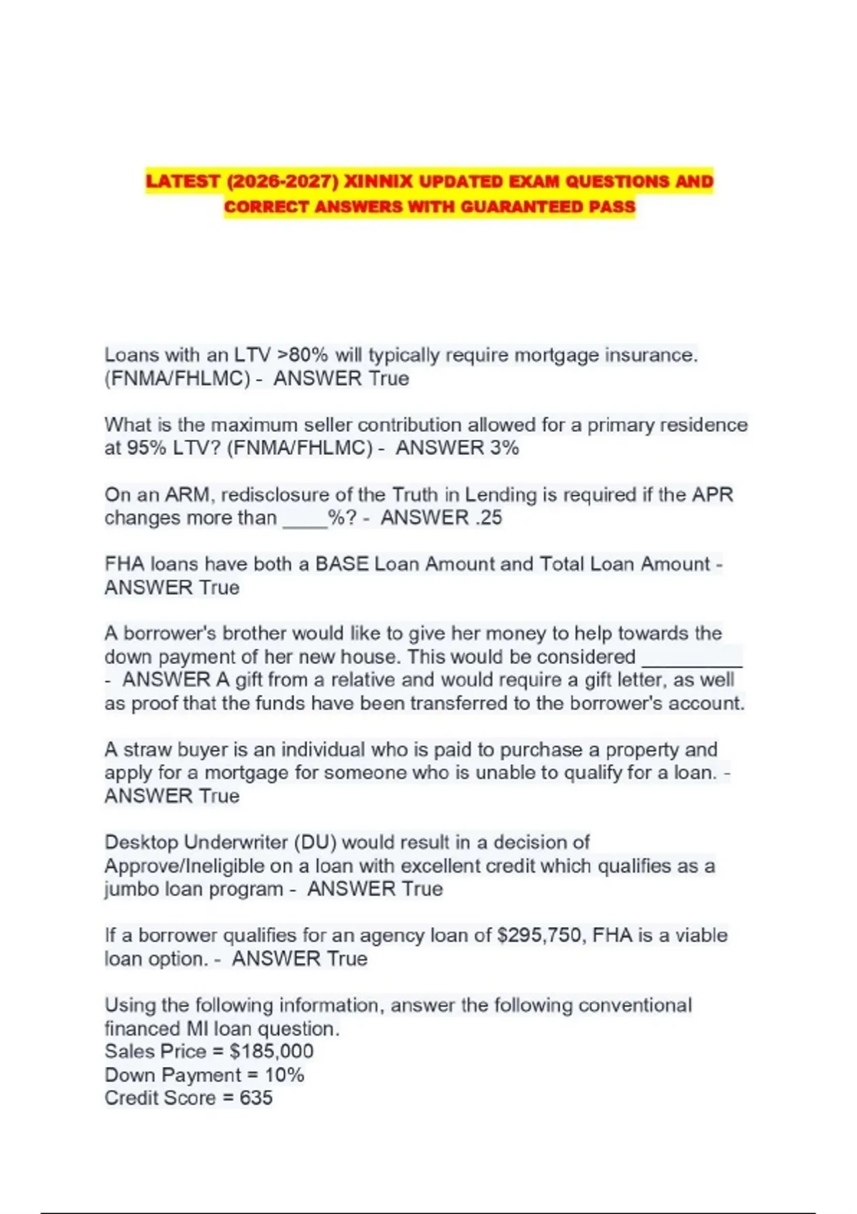 LATEST () XINNIX UPDATED EXAM QUESTIONS AND CORRECT ANSWERS WITH GUARANTEED PASS....