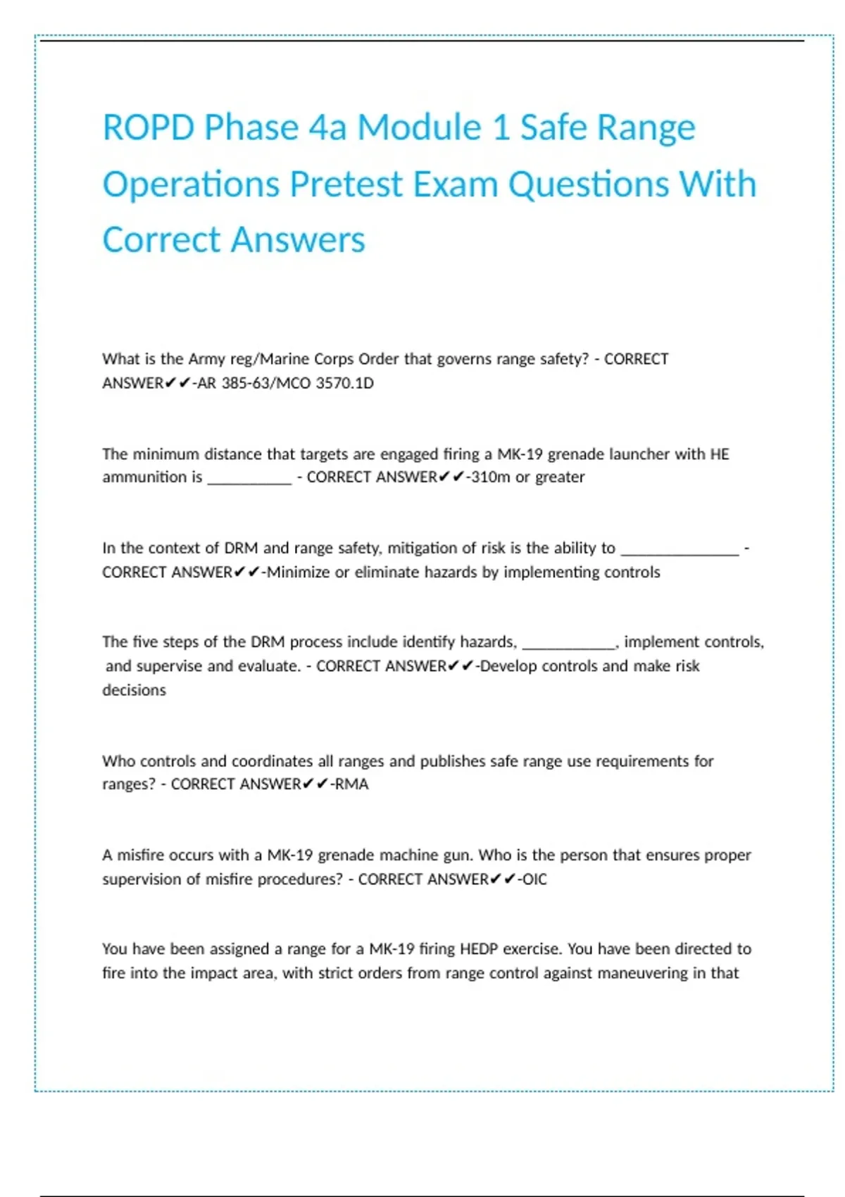 ROPD Phase 4a Module 1 Safe Range Operations Pretest Exam Questions With Correct Answers