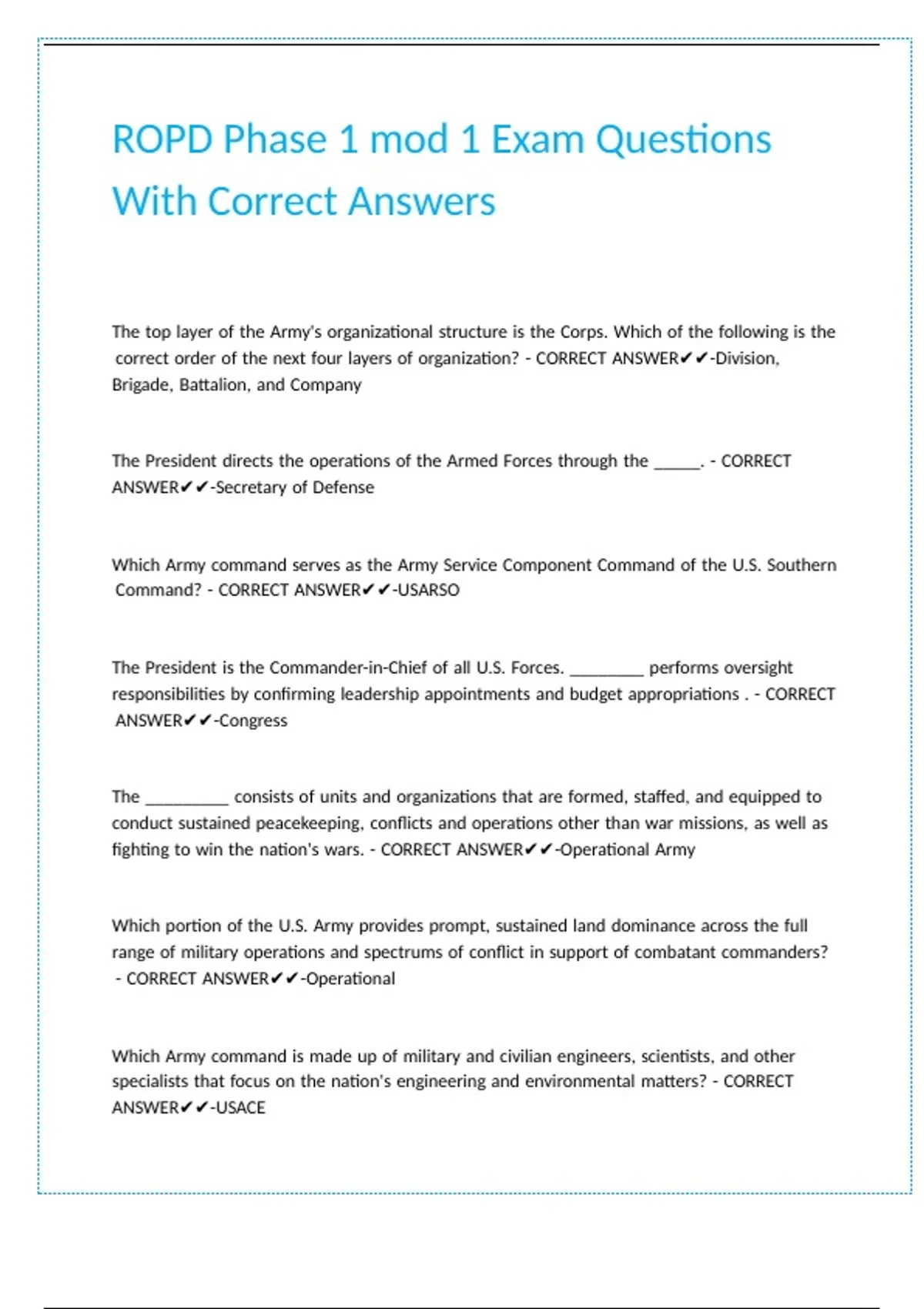 ROPD Phase 1 mod 1 Exam Questions With Correct Answers