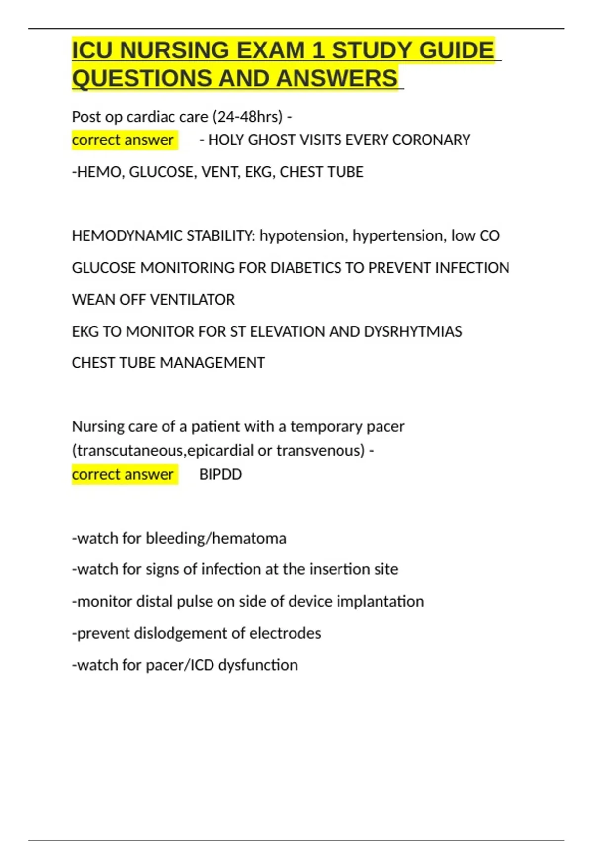 , ICU NURSING EXAM 1 STUDY GUIDE