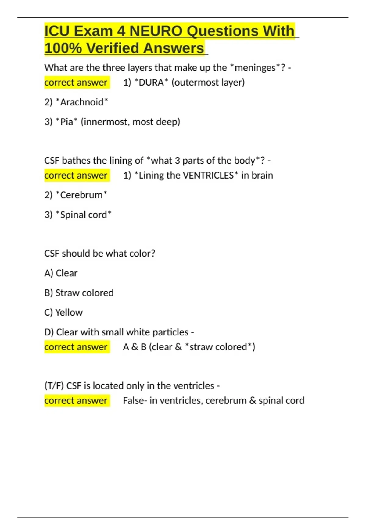 ICU Exam 4 NEURO Questions With 100- Verified Answers.docx