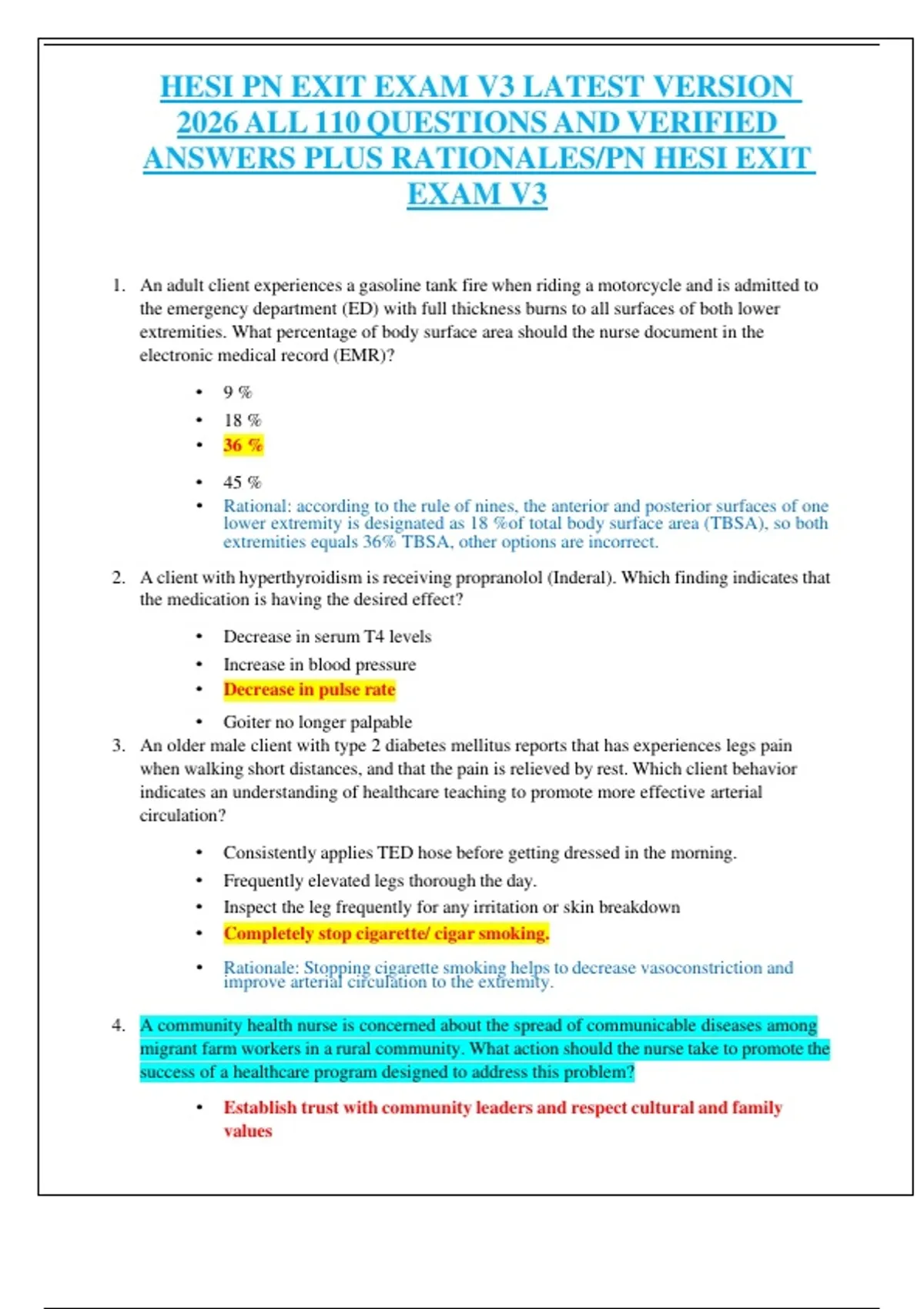 ANSWERS PLUS RATIONALES/PN HESI EXIT