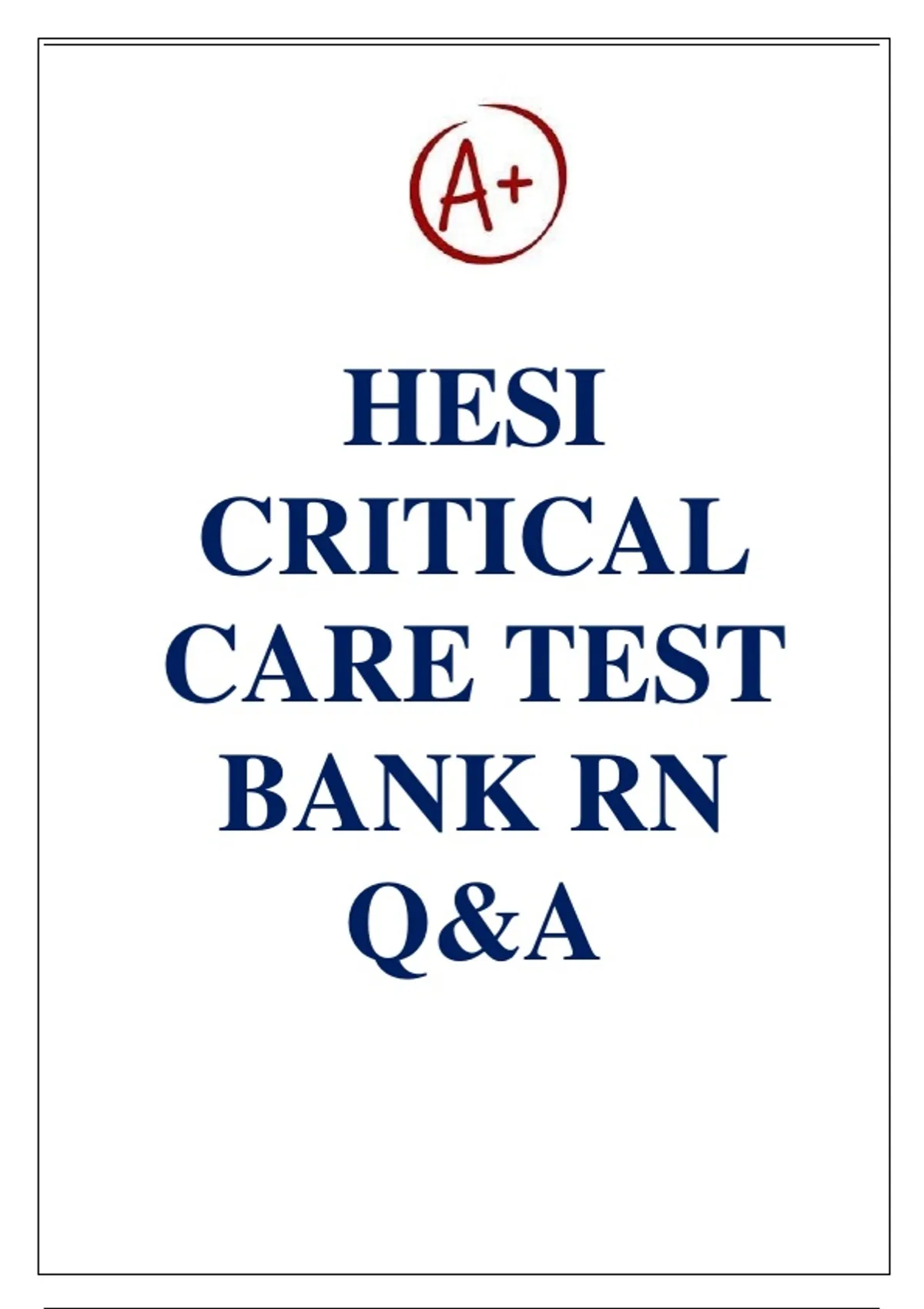 , HESI CRITICAL CARE 2026 TEST BANK RN