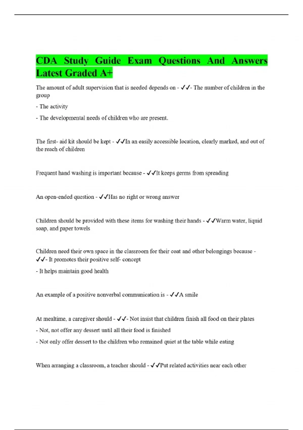 CDA Study Guide Exam Questions And Answers Latest Graded A+