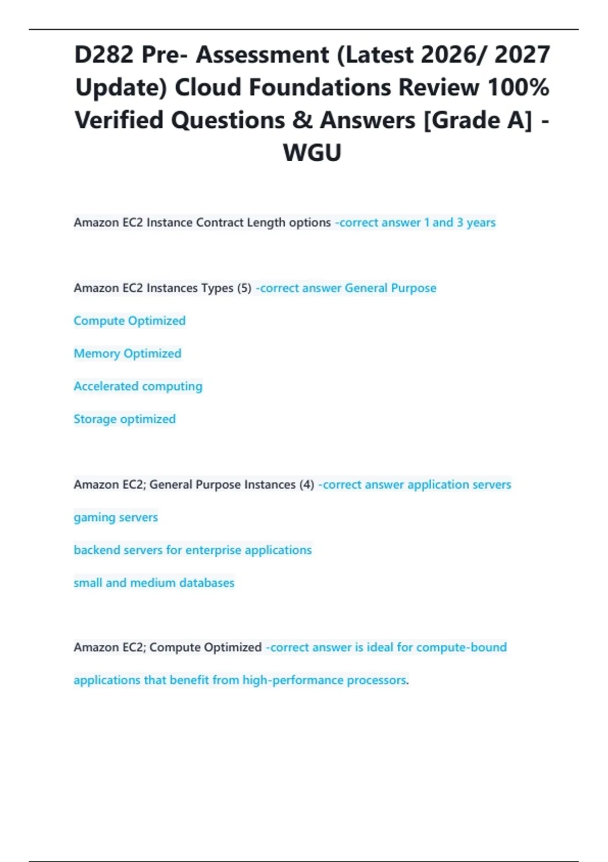 Amazon EC2 Instances Types (5) -correct answer General Purpose