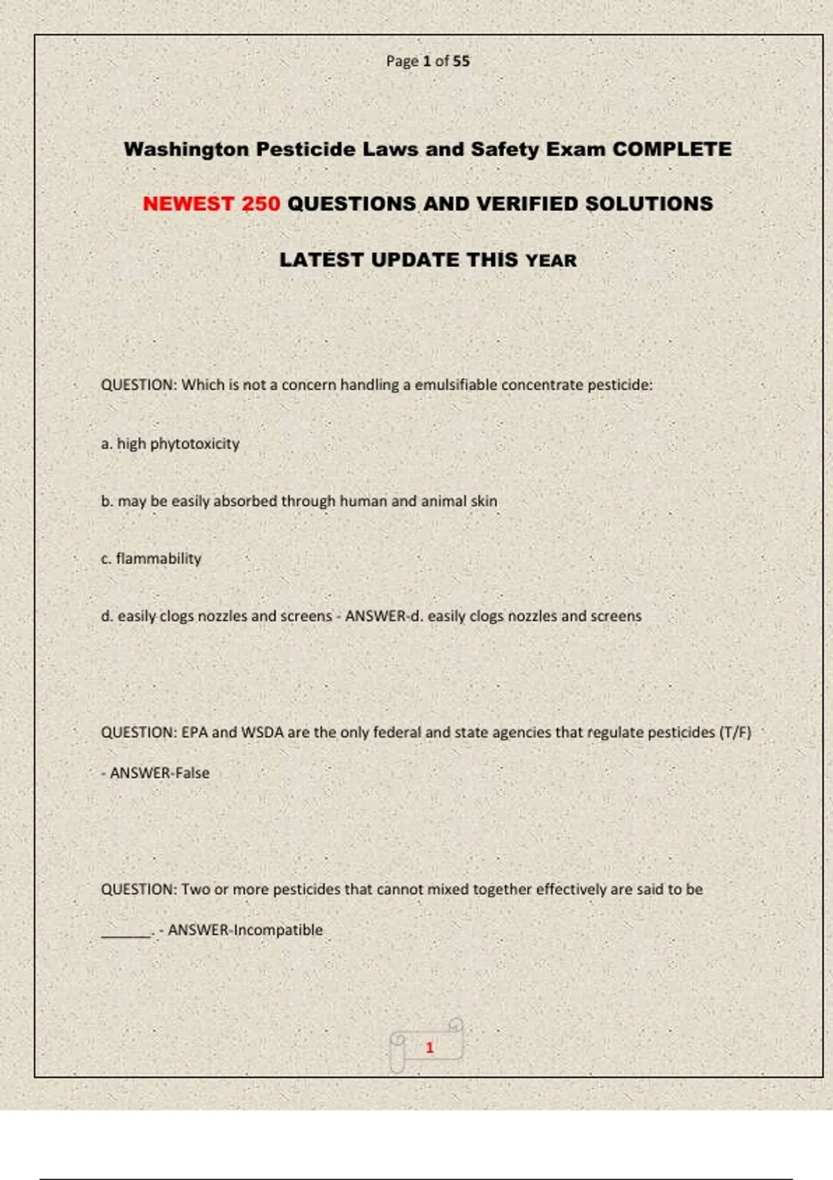 Washington Pesticide Laws and Safety Exam COMPLETE