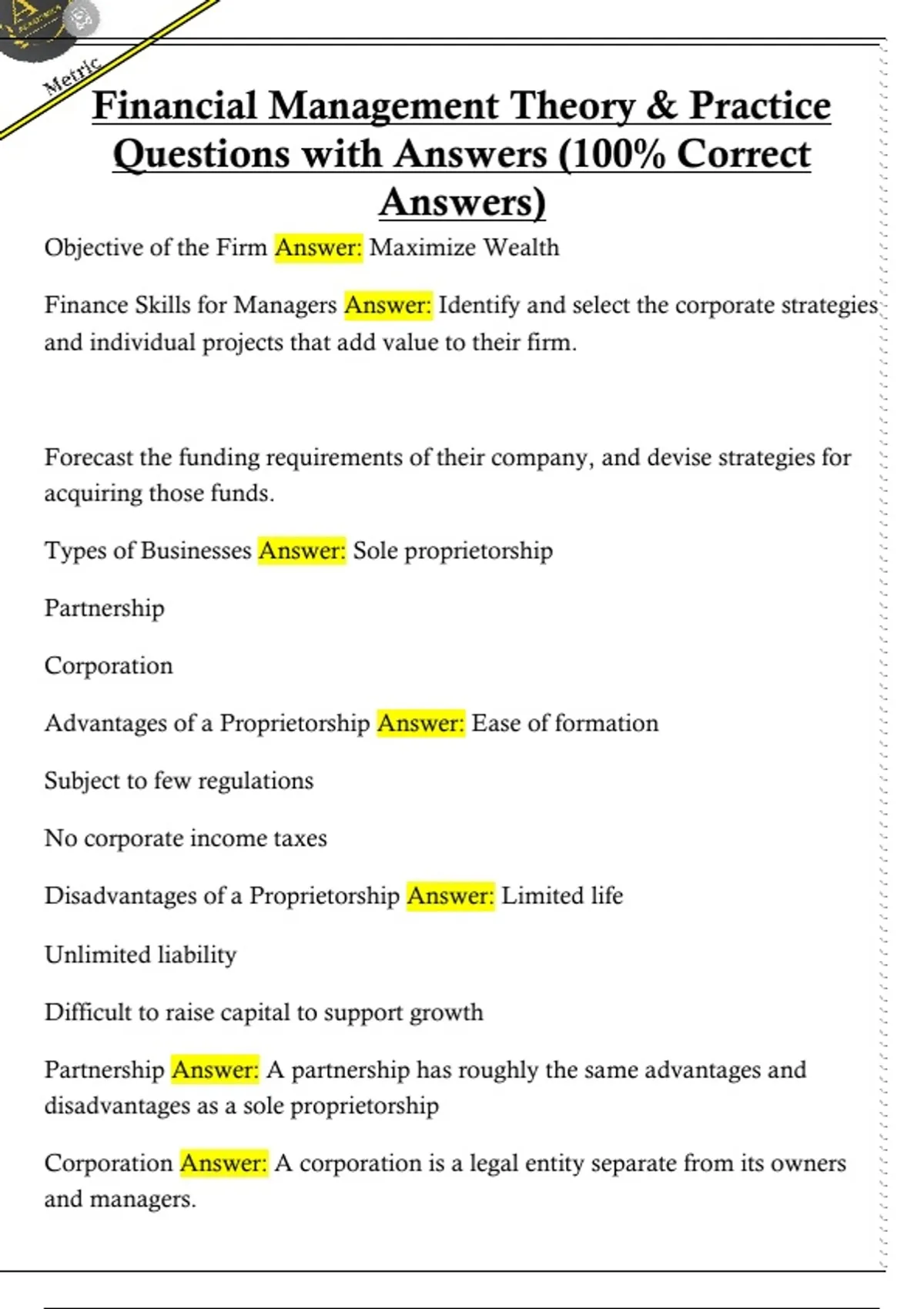 Questions with Answers (100% Correct