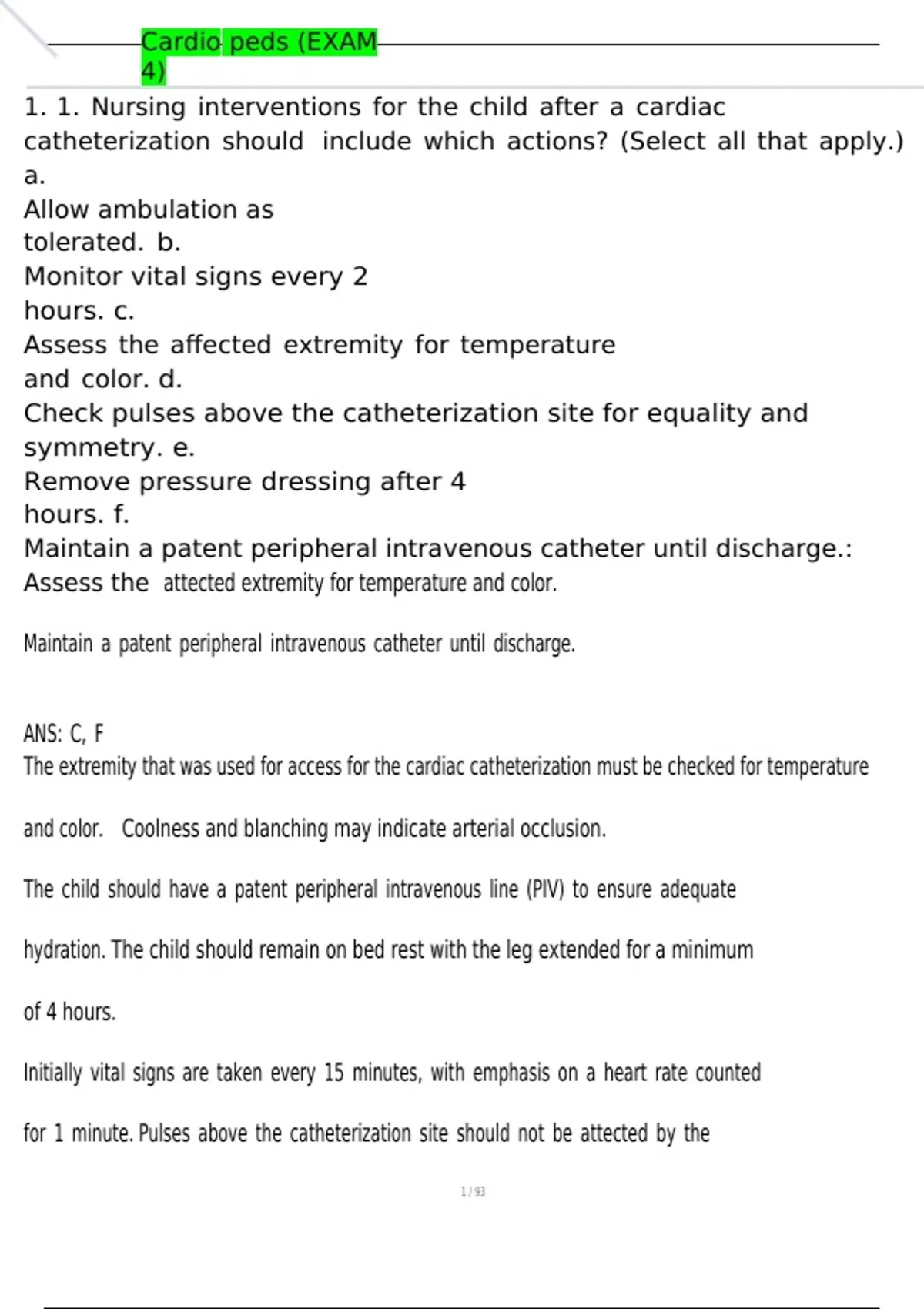 , Cardio peds (EXAM