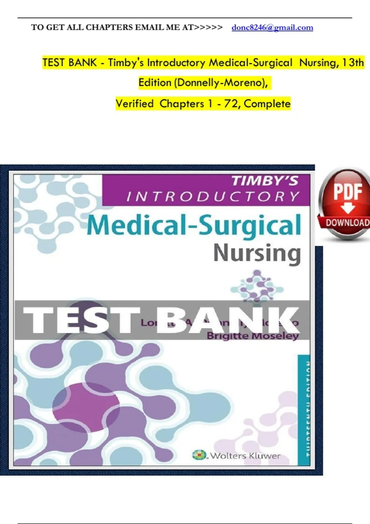 TEST BANK - Timby's Introductory Medical-Surgical Nursing, 13th