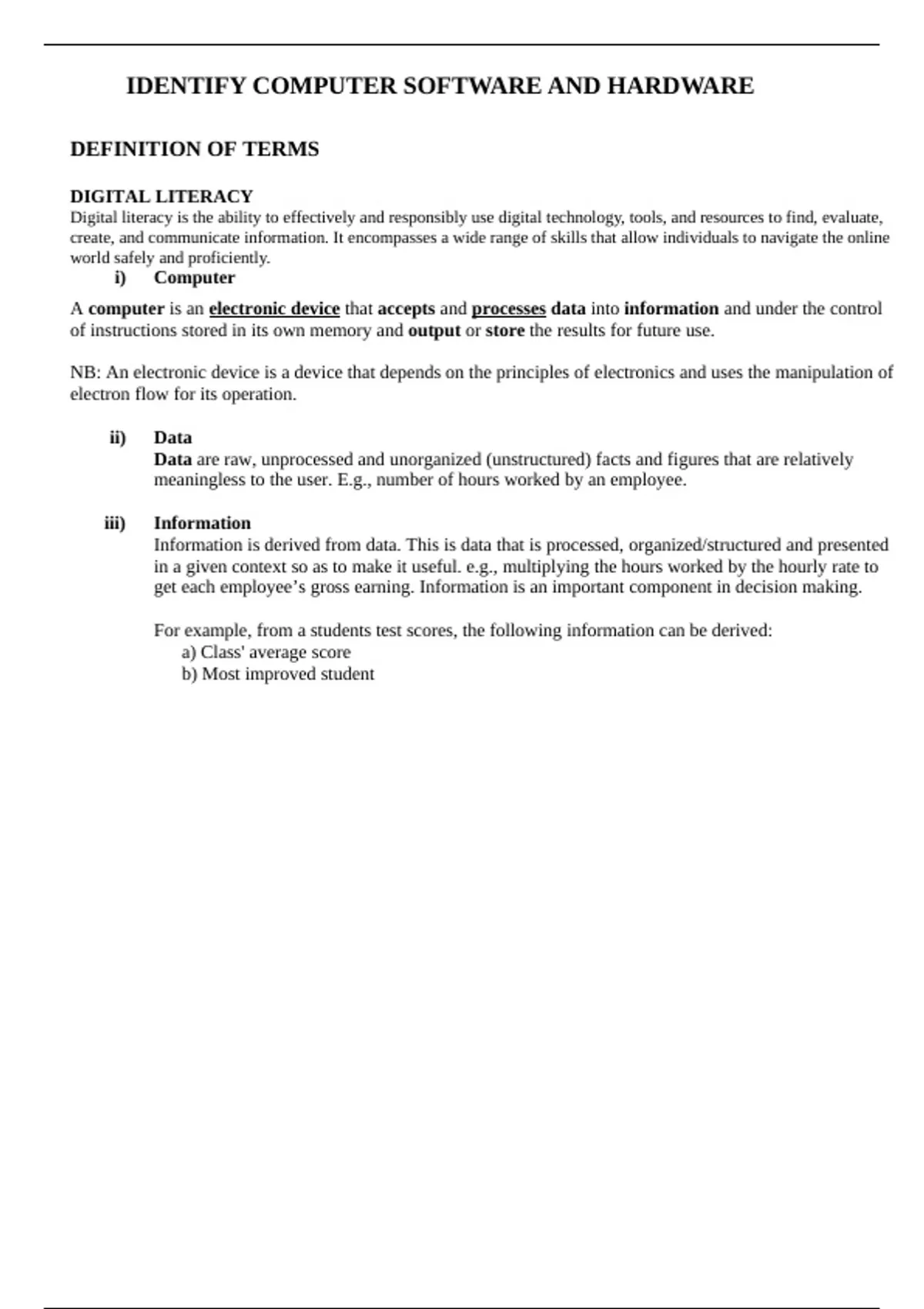 IDENTIFY COMPUTER SOFTWARE AND HARDWARE